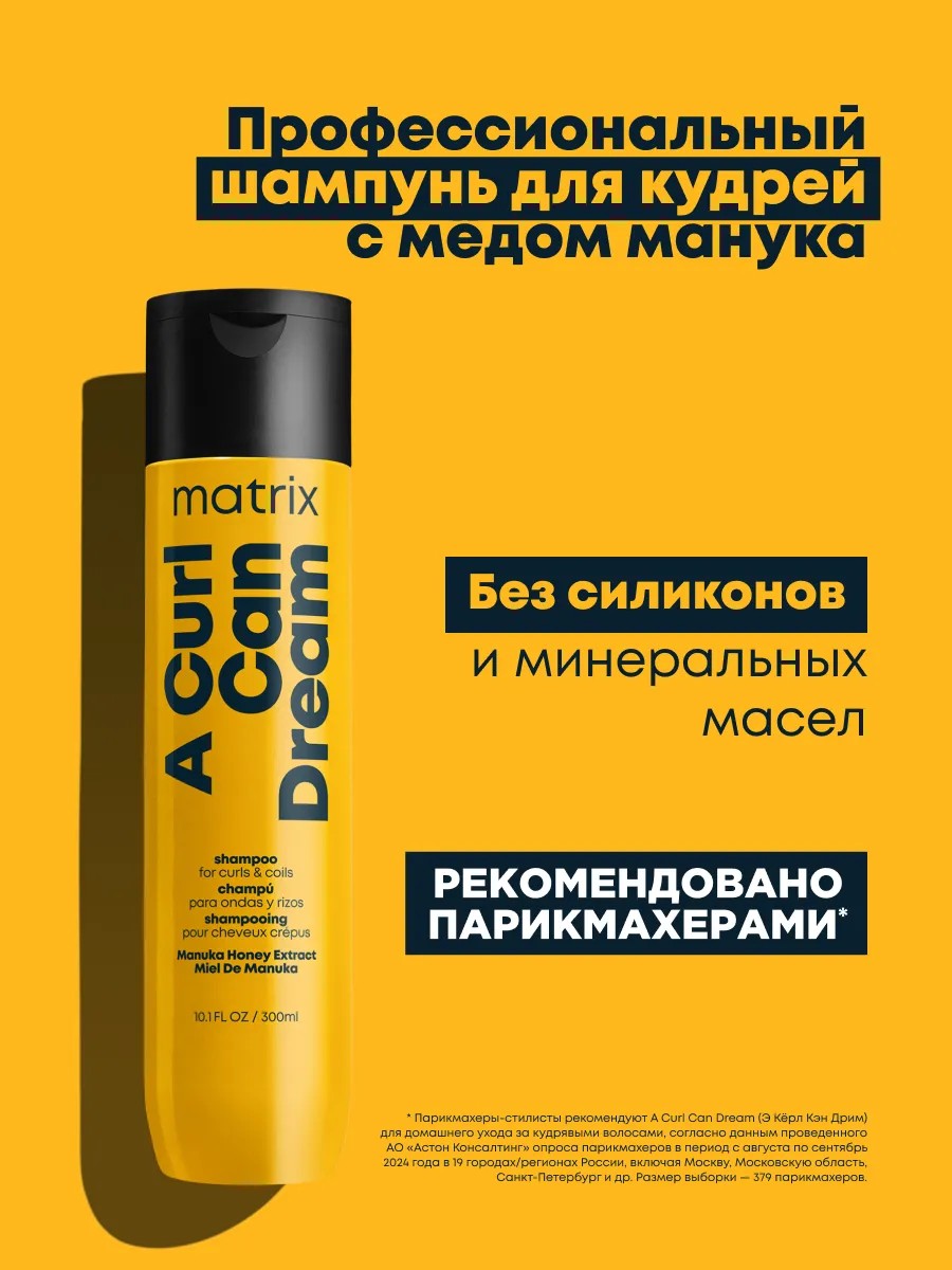 Matrix A Curl Can Dream Professional Shampoo, 300 ml, for curly and wavy hair, with Manuka honey extract, intensively cleanses, removes buildup, while moisturizing and nourishing porous curly hair.
