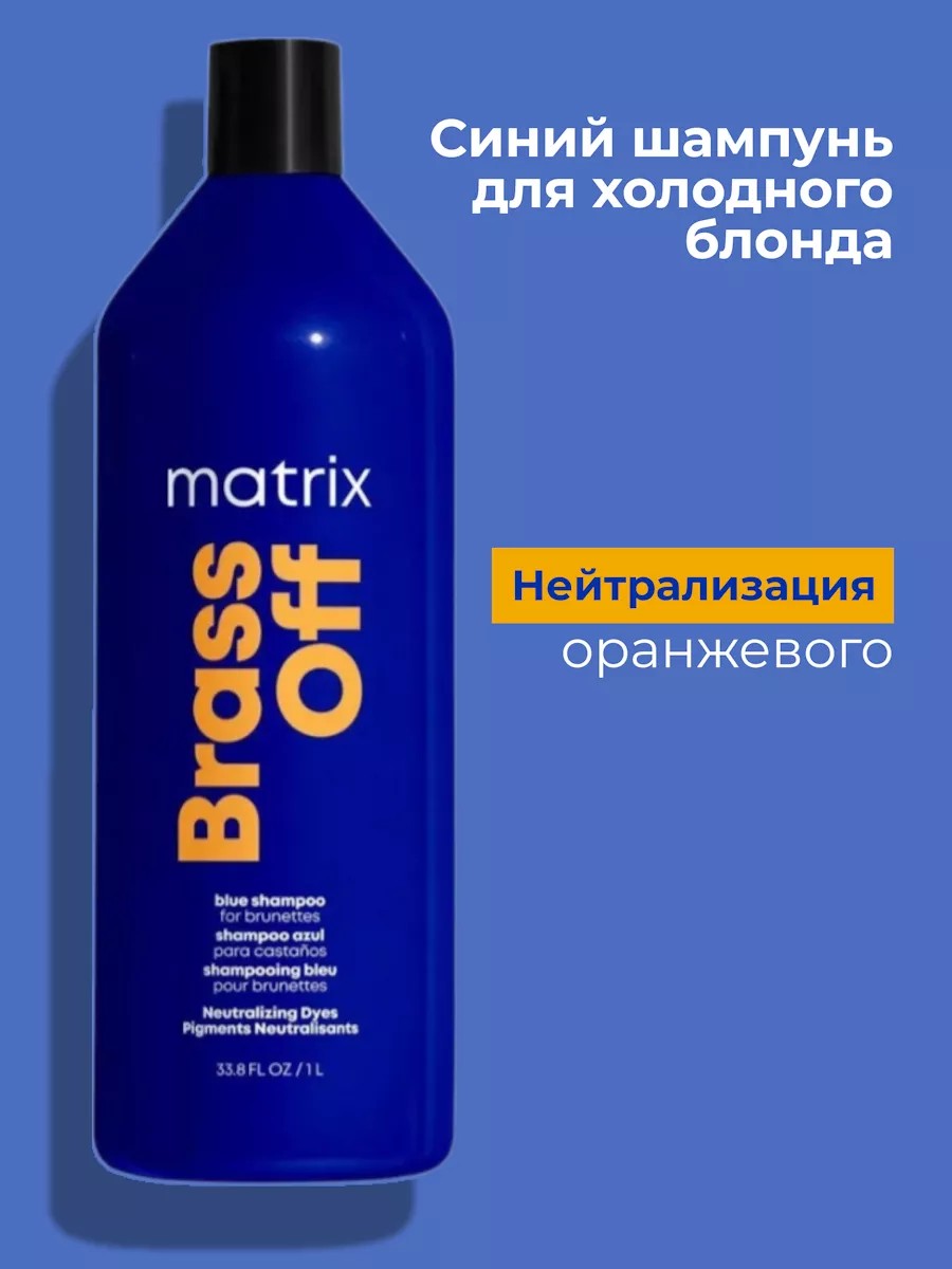 Brass Off Blue Shampoo with blue-violet pigments neutralizes warm copper and light orange undertones, maintaining a cool tone. Ideal for dark blonde and bleached brunette hair. Suitable for natural and color-treated hair. Use every other day to maintain a cool tone. The Brass Off fragrance features notes of nectarine, passion fruit, jasmine, rose, and vanilla. Directions: Wear gloves, apply shampoo to damp hair, leave on for 3-5 minutes, and rinse thoroughly. If in eyes, rinse immediately with water.