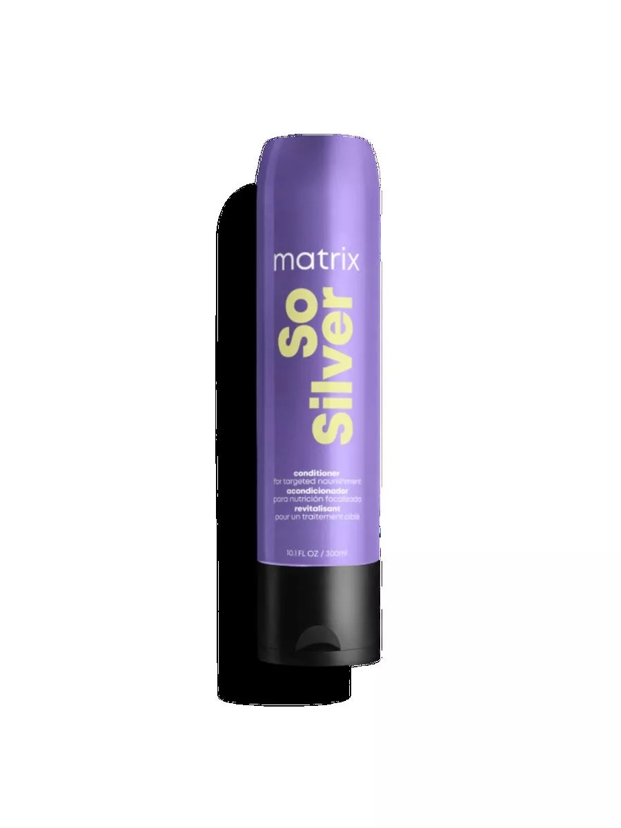 Matrix So Silver Conditioner for Blonde and Gray Hair So Silver Conditioner for blonde and gray hair targets brittle and dry areas, restores and nourishes, leaving hair smooth and shiny.