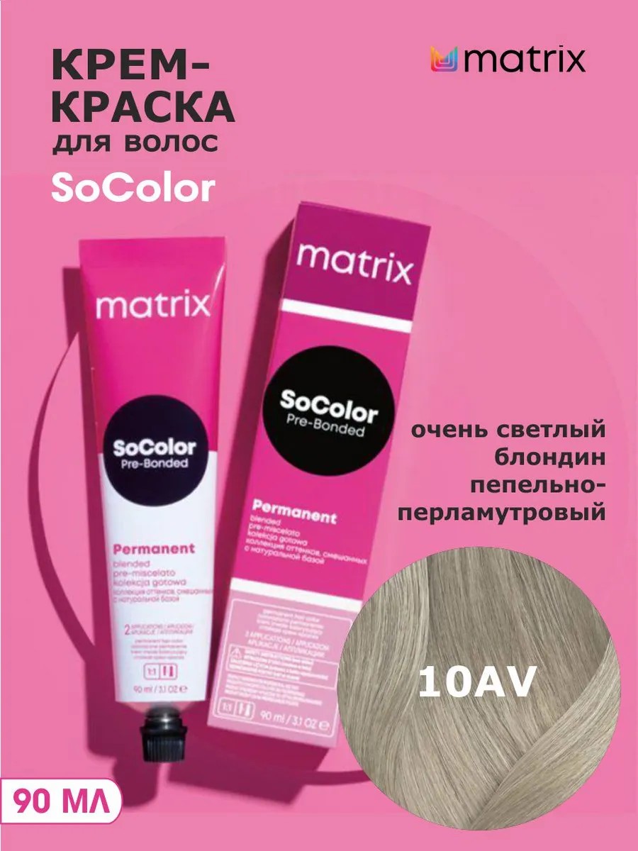 | Полное наименование товара | Крем-краска Matrix SoColor 10AV очень светлый блондин пепельно-перламутровый-10.12, 90 мл |