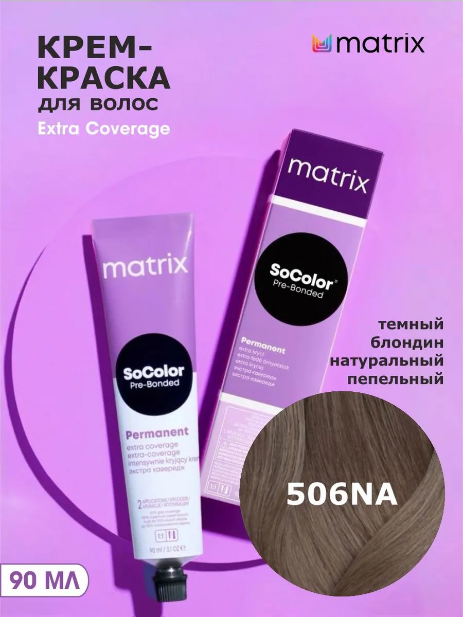 | Полное наименование товара | Крем-краска Matrix SoColor Extra Coverage 506NA темный блондин натуральный пепельный-506.01, 90 мл |