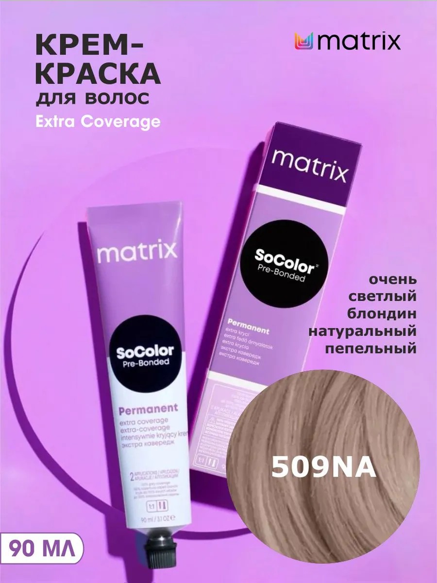 | Полное наименование товара | Крем-краска Matrix SoColor Extra Coverage 509NA очень светлый блондин натуральный пепельный-509.01, 90 мл |