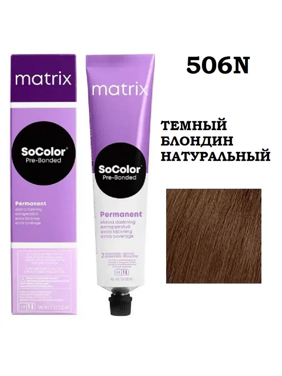 MATRIX SoColor Pre-Bonded 506N "Dark Blonde Natural" cream hair dye, 90 ml, is designed for gentle and long-lasting hair coloring.