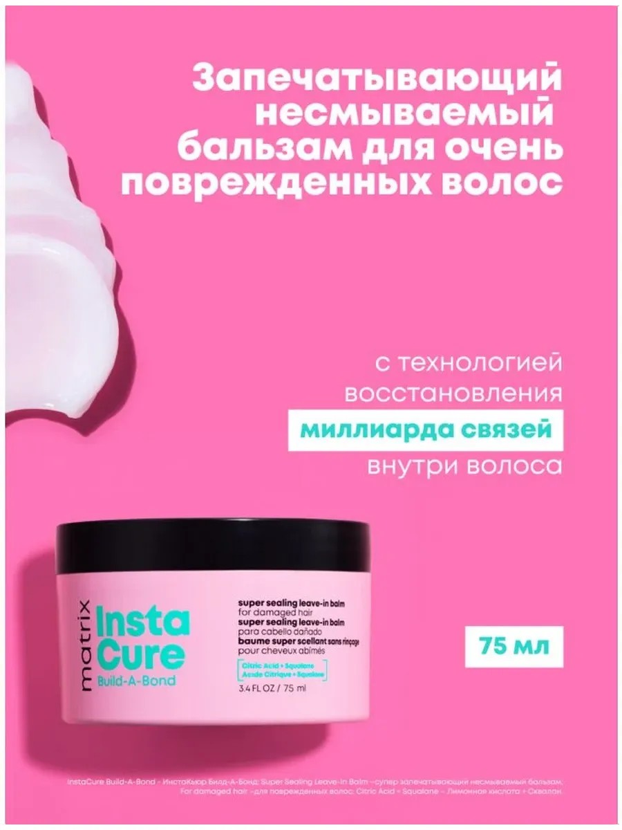 Leave-in bonding balm is part of the Instacure Build-A-Bond professional system and is the final stage of caring for damaged hair.