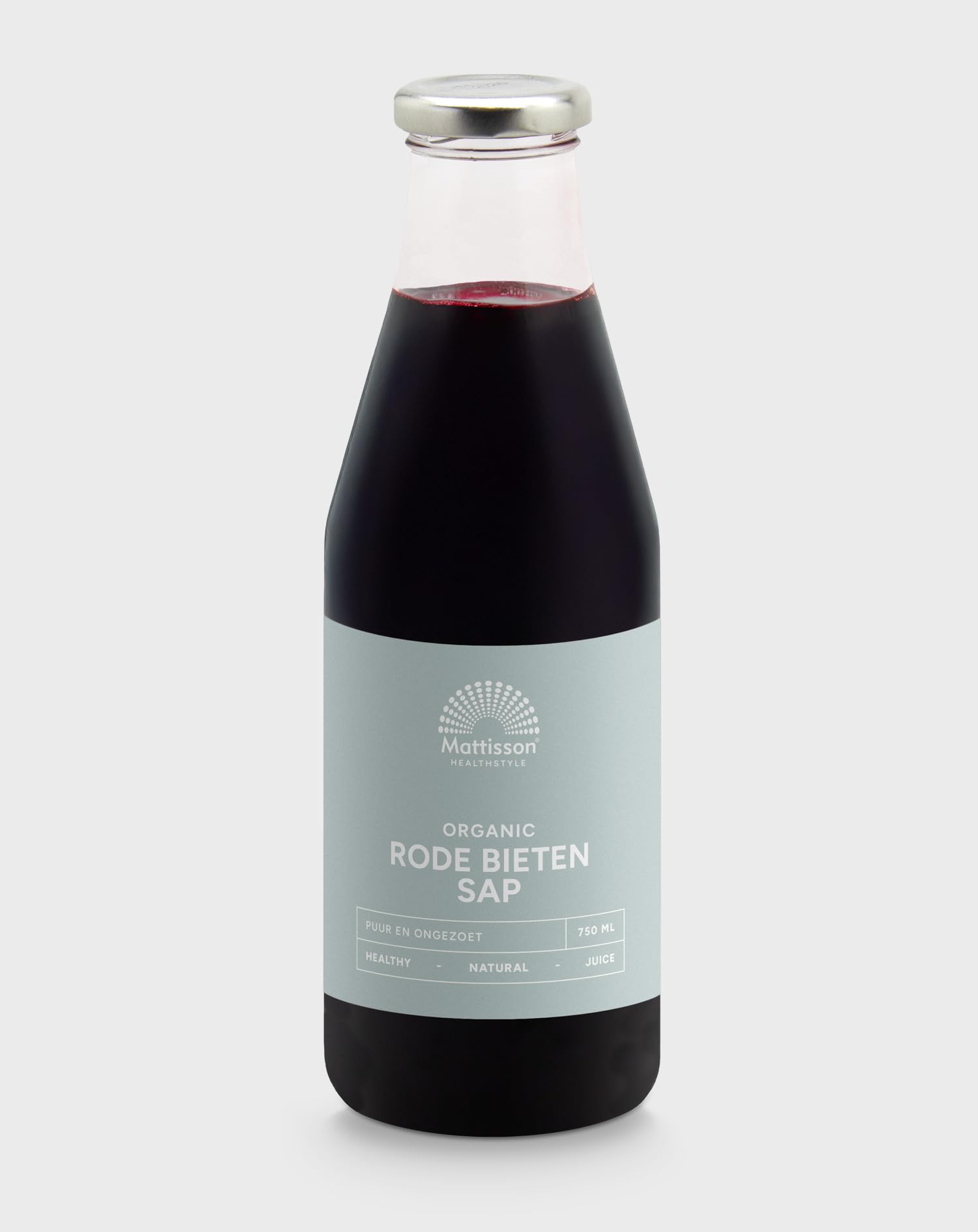 Red Beetroot Juice Red beet juice is, as the name suggests, juice from red beets. It has a slightly sweet earthy taste as you are used to from beets. Beetroot juice is one of the juices from our vegetable and fruit juice series. INGREDIENTS Organic Beet Juice (100 )Mattisson - Biologische Rode Bieten sap - 750 ml Rode Bietensap Rode bietensap is zoals de naam al zegt, sap van rode bieten. Het heeft een licht zoete grondsmaak zoals je gewend bent van bietjes. Rode bietensap is een van de sappen uit onze groente en fruitsappen serie. INGREDIËNTEN Biologisch Bieten Sap (100 )