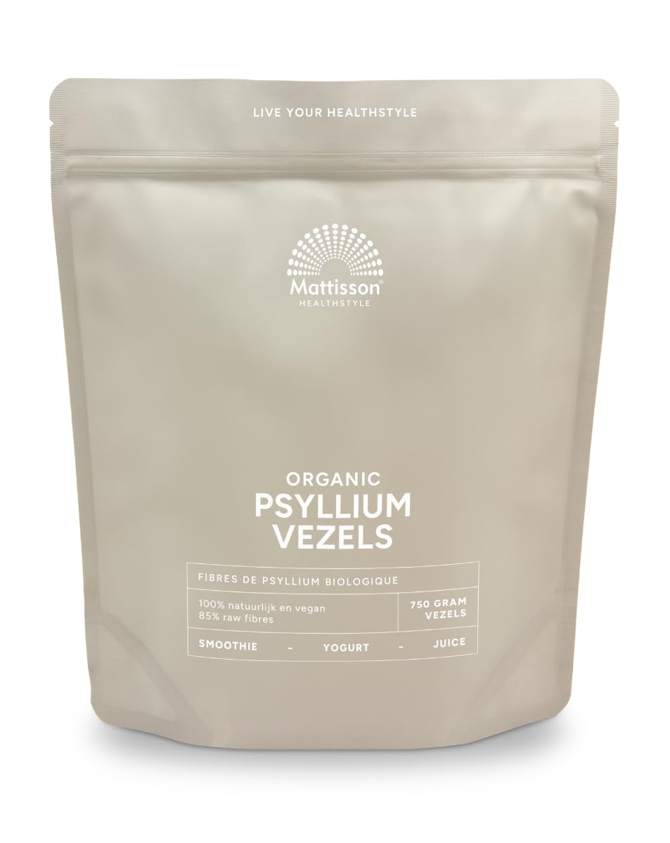 What are Psyllium Fibers? Psyllium (psyllium) consists of the seed coats (husk) of seeds of the Plantago ovata from India. Psyllium consists of more than 80 non-digestible fiber, of which 70 is soluble fiber and 30 is insoluble fiber. They cannot be broken down by the digestive enzymes in the small intestine and therefore arrive intact in the large intestine. Psyllium forms a gel when it comes into contact with water and can absorb up to ten times its own dry weight in water. Psyllium supports normal bowel movements . Evaluation of health claims is ongoing. What are dietary fibers? Dietary fiber is a type of carbohydrate that your body cannot digest or absorb. They are found in plant foods such as vegetables, fruit, legumes, nuts and whole grains. The recommended daily intake of dietary fiber is 30-40 grams for adults. What types of fiber are there? There are two main types of fiber: Soluble fiber – These dissolve in water and form a gel-like substance in the intestines. Examples are acacia fibers, psyllium fibers and fibers from oats and fruit. Insoluble fiber – These fibers remain intact and increase the volume of the stool. They are found in whole grains, seeds and vegetables. How do you use psyllium husks? Psyllium husks are easy to add to your daily diet thanks to their neutral taste. You can mix them with a large glass of water, stir into your fruit juice or smoothie, or add them to yogurt, oatmeal or cottage cheese. Psyllium fibers also come into their own in baked goods such as bread, pancakes or muffins. Because the fibers have little taste, they combine easily with all kinds of dishes and drinks. When using Psyllium, ensure sufficient fluid intake. Psyllium as a binder in gluten-free bread Psyllium can be used as a binder in gluten-free bread due to its highly absorbent properties. This property replaces the effect that gluten normally has. Why choose Mattisson's organic Psyllium fibers? Mattisson's organic psyllium fibers come from the Plantago ovata from India, where the seeds are grown and processed under controlled conditions. This variety contains psyllium husk – the most fiber-rich part of the seed. Thanks to the neutral taste and fine structure, the fibers mix effortlessly into smoothies, yogurt or baked goods, without affecting the taste. Mattisson chooses organic fibers, completely free of additives, so you can count on a pure and natural product from reliable origins. INGREDIENTS Psyllium organic (Plantago ovata, seed pod husk).85 fiber.Mattisson - Biologische Psyllium Vezels – 750 gram Wat zijn Psylliumvezels? Psyllium (Vlozaad) bestaat uit de zaadhuiden (husk) van zaden van de Plantago ovata uit India. Psyllium bestaat voor meer dan 80 uit niet-verteerbare vezels, waarvan 70 oplosbare vezels en 30 onoplosbare vezels. Ze kunnen niet worden afgebroken door de spijsverteringsenzymen in de dunne darm en komen dan ook intact aan in de dikke darm. Psyllium vormt een gel als het in contact komt met water en kan wel tien keer het eigen drooggewicht aan water opnemen. Psyllium ondersteunt een normale stoelgang . Evaluatie gezondheidsclaims is lopende. Wat zijn voedingsvezels? Voedingsvezels zijn een type koolhydraten die je lichaam niet kan verteren of opnemen. Ze komen voor in plantaardige voeding zoals groenten, fruit, peulvruchten, noten en volkoren granen. De geadviseerde dagelijkse inname van voedingsvezels is 30-40 gram voor volwassenen. Welke soorten vezels zijn er? Er zijn twee hoofdtypen vezels: Oplosbare vezels – Deze lossen op in water en vormen een gelachtige substantie in de darmen. Voorbeelden zijn acaciavezels, Psylliumvezels en vezels uit haver en fruit. Onoplosbare vezels – Deze vezels blijven intact en vergroten het volume van de ontlasting. Ze zitten in volkoren granen, zaden en groenten. Hoe gebruik je psylliumvezels? Psylliumvezels zijn eenvoudig toe te voegen aan je dagelijkse voeding dankzij hun neutrale smaak. Je kunt ze mengen met een groot glas water, door je vruchtensap of smoothie roeren, of toevoegen aan yoghurt, havermout of kwark. Ook in baksels zoals brood, pannenkoeken of muffins komen psylliumvezels goed tot hun recht. Omdat de vezels nauwelijks smaak hebben, combineren ze gemakkelijk met allerlei gerechten en dranken. Zorg bij het gebruiken van Psyllium voor voldoende vochtinname. Psyllium als bindmiddel in glutenvrij brood Psyllium kan worden gebruikt als bindmiddel in glutenvrij brood wegens de sterk absorberende eigenschappen. Deze eigenschap vervangt de werking die gluten normaal gesproken hebben. Waarom kiezen voor de biologische Psylliumvezels van Mattisson? De biologische psylliumvezels van Mattisson zijn afkomstig van de Plantago ovata uit India, waar de zaden onder gecontroleerde omstandigheden worden geteeld en verwerkt. Deze variant bevat psyllium husk – het meest vezelrijke deel van het zaad. Dankzij de neutrale smaak en fijne structuur mengen de vezels moeiteloos door smoothies, yoghurt of baksels, zonder de smaak te beïnvloeden. Mattisson kiest voor biologische vezels, volledig vrij van toevoegingen, zodat je kunt rekenen op een puur en natuurlijk product van betrouwbare herkomst. INGREDIËNTEN Psyllium biologisch (Plantago ovata, zaadhuls husk).85 vezels.