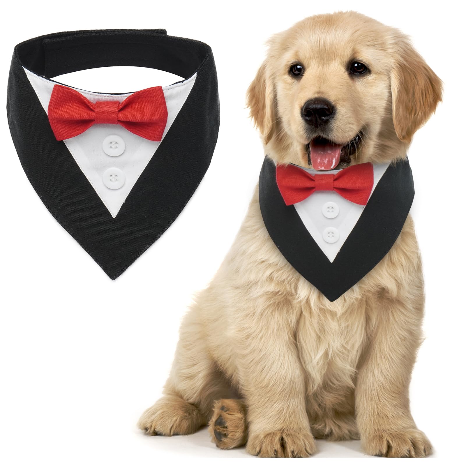 MHaustlie Hunde Smoking Bandana, Formale Haustier Smoking Fliege, Formale Feste Hundehalstuch, Verstellbar Haustier Anzug Fliege Bandana für Hochzeit Geburtstag Halloween Weihnachten(S, RotSchwarz) S RotSchwarz