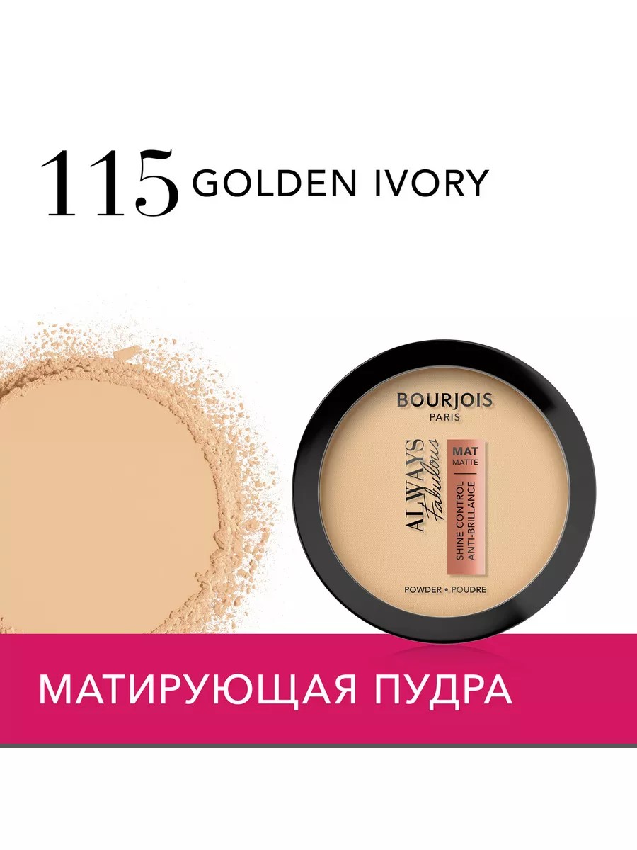 данный тон хорошо подходит для загорелого лица. Матирующая компактная пудра Bourjois Always Fabulous сливается с тоном кожи для придания максимально естественного оттенка и обладает уникальным тройным действием: минимизирует несовершенства кожи, суживает поры и разглаживает морщинки. Создает ровное сияющее покрытие, сохраняющееся в идеальном виде в течение всего дня. С помощью пудры Always Fabulous вы всегда будете выглядеть непревзойденно! Она легко набирается кисточкой и спонжем, а также прекрасно наносится на лицо тонким слоем. Идеально подходит для утреннего макияжа и для освежения мейкапа в течение дня. Может использоваться регулярно.
