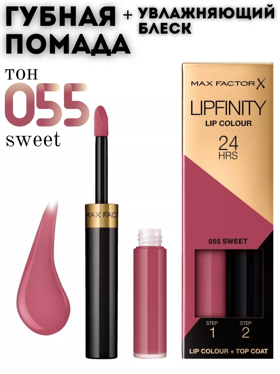 MAX FACTOR Губная помада+увлажняющий блеск для губ Lipfinity 055