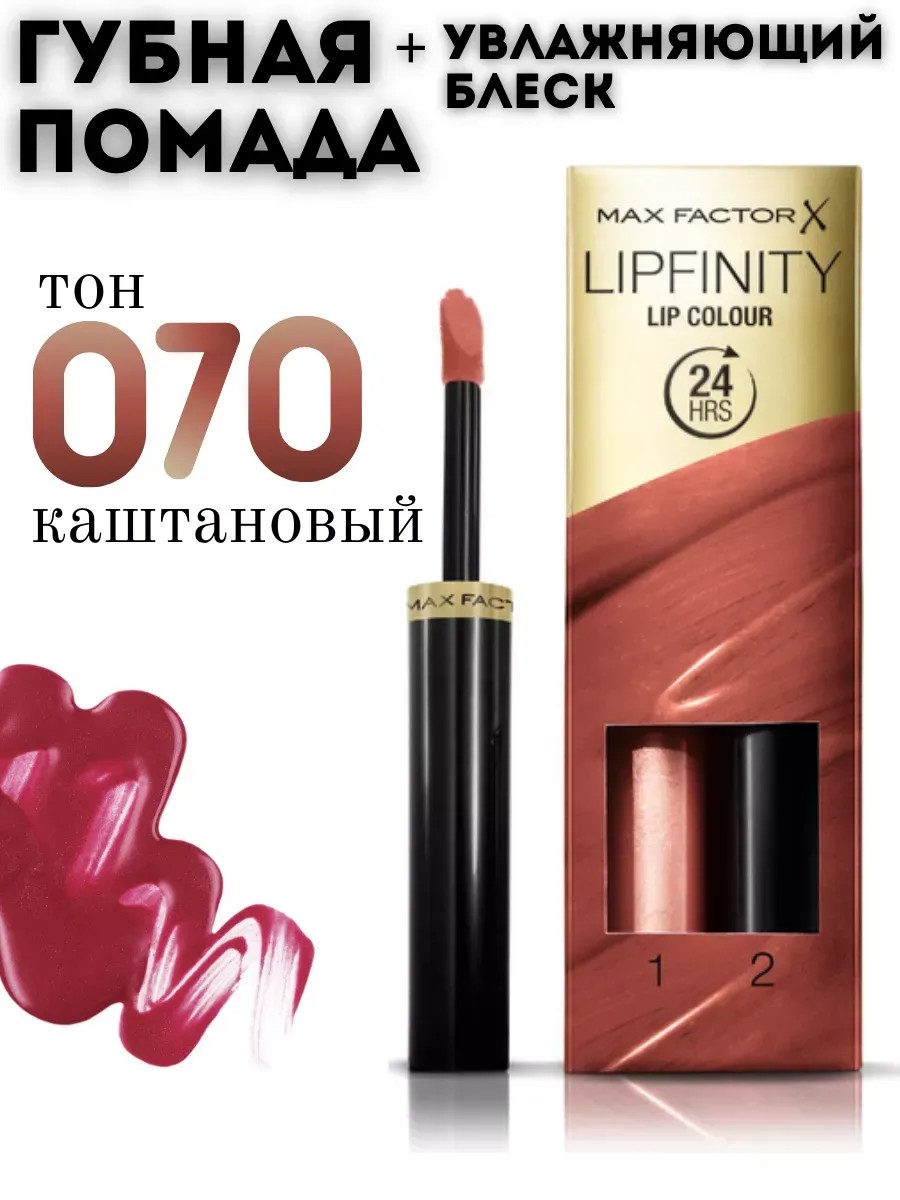 MAX FACTOR Губная помада+увлажняющий блеск для губ Lipfinity 070