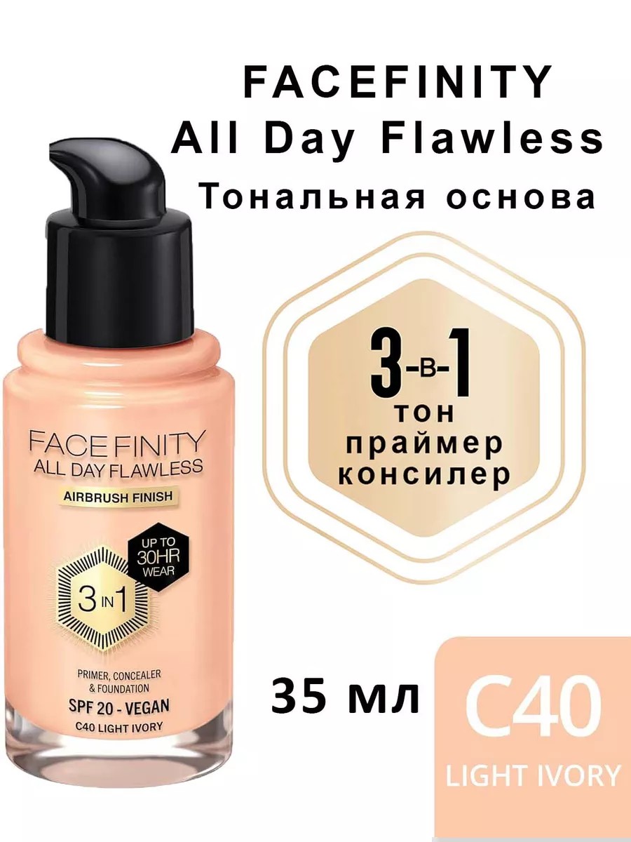 MAX FACTOR Тональная основа Facefinity All Day Flawless 40 Light Ivory