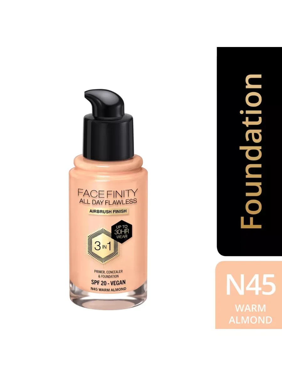Facefinity All Day Flawless 3 в 1 тон N45 WARM ALMOND от Max Factor – это уникальный продукт, объединяющий в себе три основных функции для создания идеального макияжа. Давай разберемся!