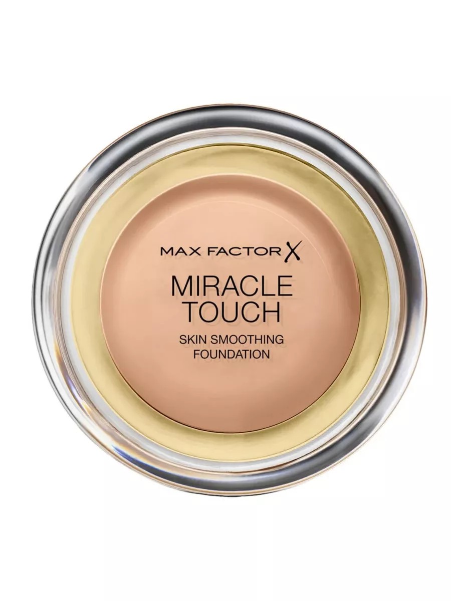 Max Factor Miracle Touch Skin Perfecting Foundation, Shade 70 Natural, 11.5 ml. Perfectly prepares skin for makeup. Just one layer eliminates the need for concealer or powder. Formula: This lightweight foundation melts in your hands and glides on smoothly, creating an even, radiant, and uniform coverage that's not too sheer and not too heavy. As a result, skin looks fresh, incredibly even, and radiates from within. For flawless coverage, apply just one light layer of foundation or build coverage with the special formula. This foundation is suitable for all skin types, including sensitive skin, and is non-comedogenic because it won't clog pores. Makeup artist tips: The convenient, compact packaging is easy to hold, and it includes a sponge for quick and easy application. The ideal shade should match the skin tone of the jawline.