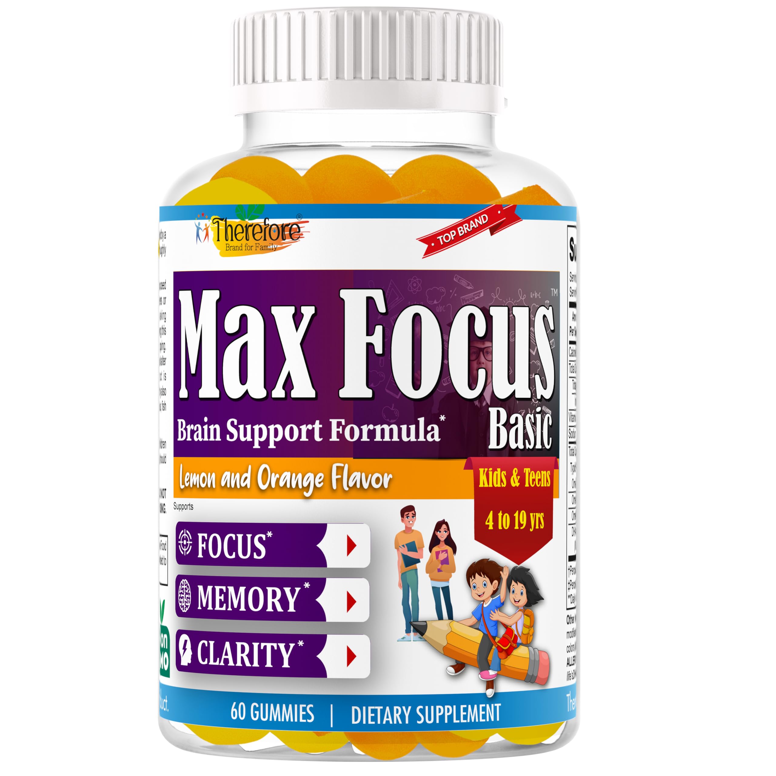 Why Choose Max Focus?- Because your child deserves the best! Max Focus combines science, safety, and taste to create a supplement that supports focus, memory, and brain performance naturally. Each gummy is crafted with care to make daily brain nutrition easy and effective. When compared to traditional kids' vitamins or fish oil products, Max Focus offers a smarter, plant-based way to support growing minds — every chew counts. Stimulant-Free, Caffeine-Free, And Non-Habit Forming - Max Focus Kids Focus Gummies is crafted in a GMP-certified USA facility, ensuring the highest quality and safety standards. Our formula is Non-GMO, Gluten-Free, Gelatin-Free, and Low-Sugar, making it safe and gentle for children and teens. Third-party lab tested for purity and potency, these focus vitamins for kids are trusted by parents who want transparency and quality. Delicious, Chewable Easy to Enjoy- Say goodbye to fishy aftertaste and difficult capsules — our focus gummies for kids come in a natural orange flavor that kids love. These chewable memory vitamins for kids are tasty, soft, and fun to eat. Kids love the fruity flavor parents love that it supports their children's mental clarity, memory, and concentration every day. Plant-Based Omega 3 DHA Formula- Kids Focus and Attention Supplements uses a fish oil-free, vegan Omega 3 DHA formula made from sustainable algae sources. It's gentle on kids' tummies, non-fishy, and rich in Omega 3 fatty acids essential for brain, heart, and eye health. This clean, plant-based alternative ensures your kids get the brain-boosting benefits of DHA without any artificial colors, synthetic flavors, or gelatin. Focus, Memory
