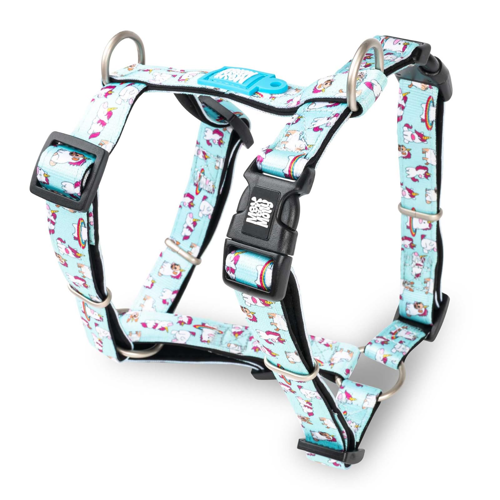 Our Max & Molly H-Care are the perfect daily companion for your four-legged friend and you.With our creative designs you make every sidewalk a catwalk and are certainly the eye -catcher of the quarter. Our harnesses are not only stylish, but also safe and practical.The two super-strong click closures keep the dog's weight 5 times, the dishes are infinitely adjustable due to the controller and can thus be adapted to almost every dog ??body.On the back there are two D-rings for more flexibility and control when driving on a leash or simply by z.B. to attach accessories. Our H frames consist of a robust polyester side, printed with unique designs and the soft, quickly drying, cuddly neoprene on the back.Due to the selection of materials, the H-Care is ultra-light and particularly pleasant for your dog.Your fur nose will not even notice that it is wearing a dish With this dishes you can start carefree in your next adventure. Instructions Going for a walk, jogging or driving for bicycles with your dog.Max & Molly: Because your fur nose is something very special.Our products combine design, quality and function to enrich everyday life with your pet - for more joy and comfort every day.Flexible: The dishes are suitable for most dog breeds, since it can be individually adjusted by the shape and four controllers for the perfect size setting.Practical & comfortable: it does not rub on the foresights and thus grants maximum freedom of movement for your darling.Sure: the 2 power goats, our megast-strong click closures, keep the dog gather 5 times.With the extra D ring at the front of the neck, the dog can be better guided if necessary.High quality: The light dishes are made of soft, hypoallergenic and quickly drying neoprene with an extra padding for a pleasant grip and extremely tear -resistant polyester with precise and cool print.The metal parts are made of solid, solid, brushed material. Unsere Max & Molly H-Geschirre sind der perfekte tägliche Begleiter für deinen Vierbeiner und dich. Mit unseren kreativen Designs macht ihr jeden Bürgersteig zum Laufsteg und seid mit Sicherheit der Hingucker des Viertels. Unsere Geschirre sind aber nicht nur stylish, sondern auch sicher und praktisch. Die zwei superstarken Klickverschlüsse halten das 5-fache des Hundegewichts, durch die Regler ist das Geschirr stufenlos verstellbar und lässt sich so an fast jeden Hundekörper anpassen. Auf dem Rücken sind gleich zwei D-Ringe für mehr Flexibilität und Kontrolle beim Führen an der Leine oder einfach um z. B. Accessoires anzuhängen. Unsere H-Geschirre bestehen aus einer robusten Polyester-Seite, bedruckt mit einzigartigen Designs und dem weichen, schnell trocknendem, anschmiegsamen Neopren auf der Rückseite. Durch die Materialauswahl sind die H-Geschirre ultraleicht und für deinen Hund besonders angenehm zu tragen. Deine Fellnase wird gar nicht merken, dass sie ein Geschirr trägt Mit diesem Geschirr könnt ihr ganz unbeschwert in euer nächstes Abenteuer starten. GEBRAUCHSANWEISUNG Zum Spazieren gehen, joggen oder aber auch zum Fahrrad fahren mit ihrem Hund geeignet.Max & Molly: Weil deine Fellnase etwas ganz Besonderes ist. Unsere Produkte vereinen Design, Qualität und Funktion, um dir den Alltag mit deinem Haustier zu bereichern – für mehr Freude und Komfort jeden Tag. Flexibel: Das Geschirr ist für die meisten Hunderassen geeignet, da es durch die Form und vier Regler für die perfekte Größeneinstellung individuell eingestellt werden kann. Praktisch & Bequem: Es scheuert nicht an den Vorderläufen und gewährt somit maximale Bewegungsfreiheit für deinen Liebling. Sicher: Die 2 Power Buckel, unsere megastarken Klick-Verschlüsse, halten das 5-fache des Hundegewichts. Durch den extra D-Ring vorne am Nacken lässt sich der Hund bei Bedarf besser führen. Hochwertig: Das leichte Geschirr besteht aus weichem, hypoallergenem sowie schnell trocknendem Neopren mit einer extra Polsterung für einen angenehmen Griff und extrem reißfestem Polyester mit präzisem und coolem Aufdruck. Die Metallteile bestehen aus massivem, solidem, gebürstetem Material.Max & Molly Hundegeschirr in H-Form, Ultrabequemes Geschirr Hund aus Neopren für kleine Hunde, Unicorn/S, Gepolstert, Sicher & Ultraleicht – Komfort für deinen treuen Begleiter S Unicorn