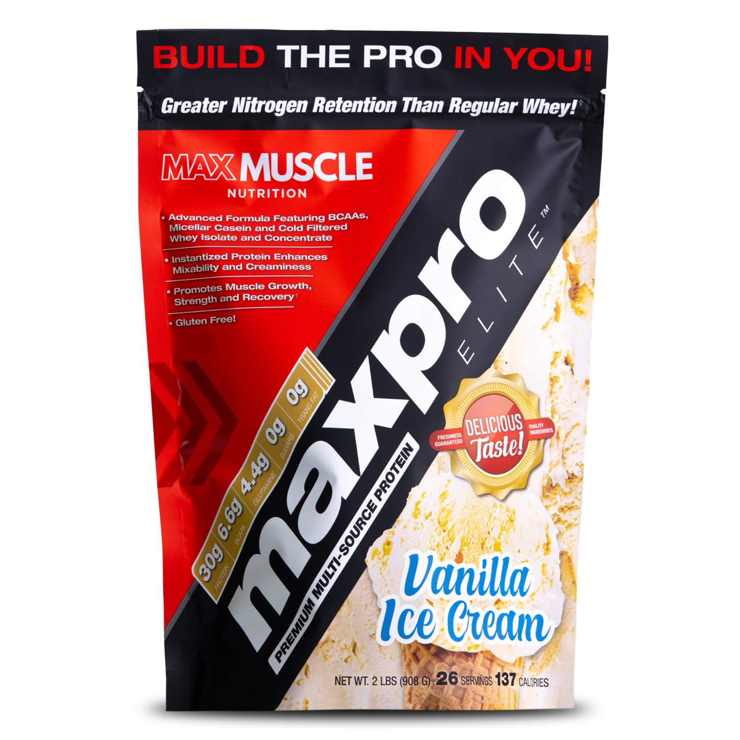 Max Muscle Maxpro Elite Whey Protein Powder | 30g Protein | 0g Sugar | 6.6g BCAAs | Micellar Casein Cold Filtered Whey Isolate Protein | Promotes Muscle Growth & Recovery (Vanilla Ice Cream 2lb) Vanilla 2 Pound (Pack of 1)