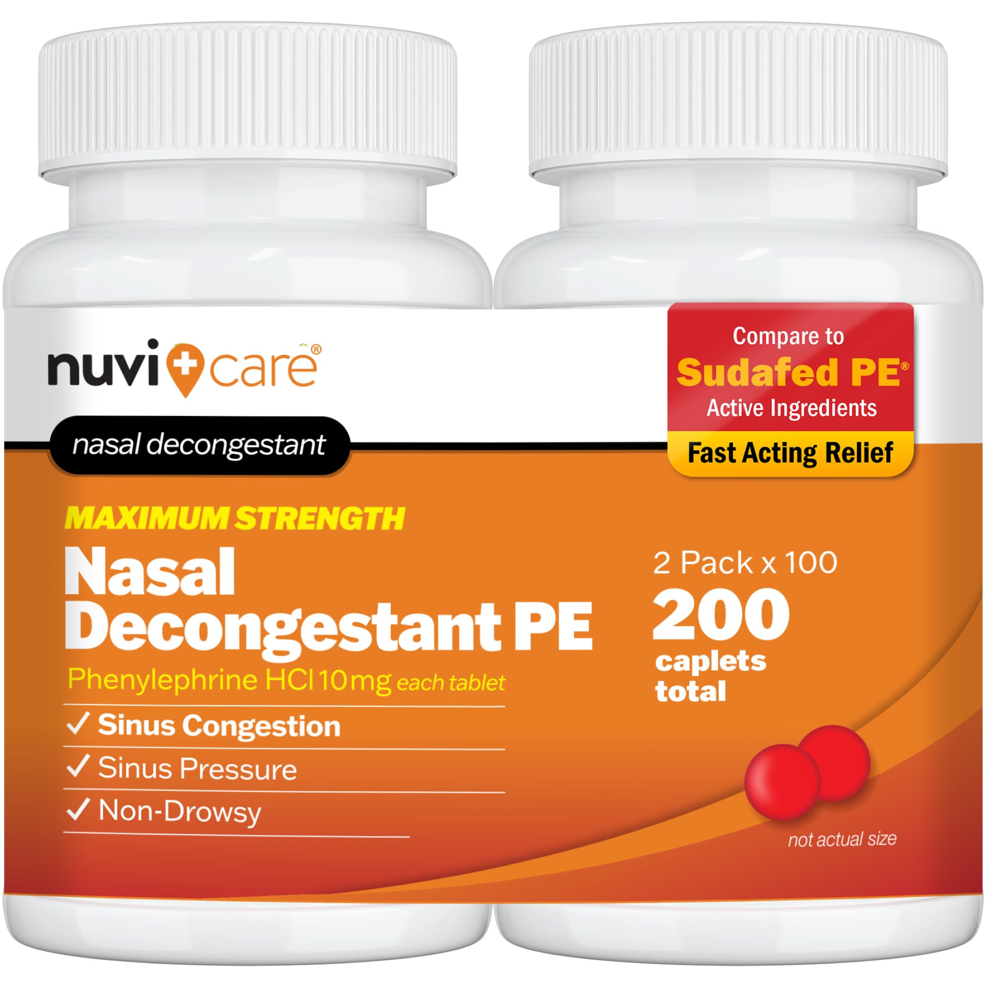 QUALITY YOU CAN TRUST - Nuvicare Max Strength Nasal Decongestant PE is produced in a facility that meets stringent quality and safety standards. Trust Nuvicare for reliable and effective OTC solutions at generic value, and receive only the highest quality products for your health needs. NON-DROWSY FORMULA - Many sinus pills are only suitable for nighttime use, but our non-drowsy formula allows you to get the congestion relief you need without feeling sleepy. Stay alert and active all day long, so you can carry on with your tasks uninterrupted. BEAT CONGESTION TO BREATHE EASIER - Our sinus medicine is formulated for sinus pressure relief and can help with common symptoms like runny nose. By reducing congestion, you can breathe better or deeper during the day and night as you recover back to full health. PHENYLEPHRINE HCL 10 MG TABLETS - Contains phenylephrine HCl, a potent nasal decongestant. Phenylephrine (10mg) is widely used in over-the-counter medications for its ability to constrict blood vessels in the nasal passages, reducing swelling and congestion. MAXIMUM STRENGTH: COMPARE TO SUDAFAD PE - Target nasal congestion directly with our generic nasal decongestant tablets. Tiny easy-to-swallow red tablets provide powerful support to clear your nasal passages for easier breathing. Compare to the active ingredient in popular OTC brands.