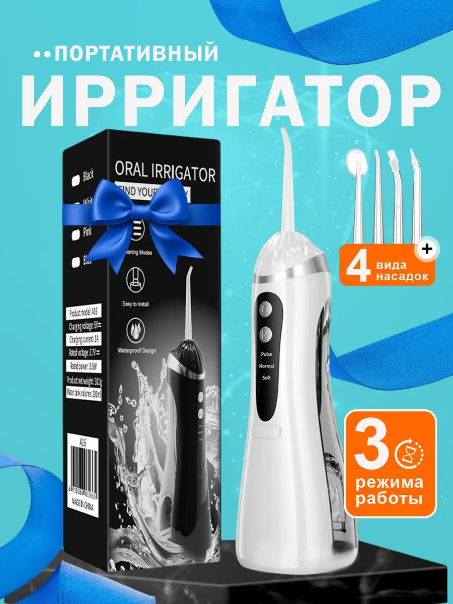 | Доп. опции ирригатора | индикатор режима работы; регулировка давления струи; влагозащитный корпус |