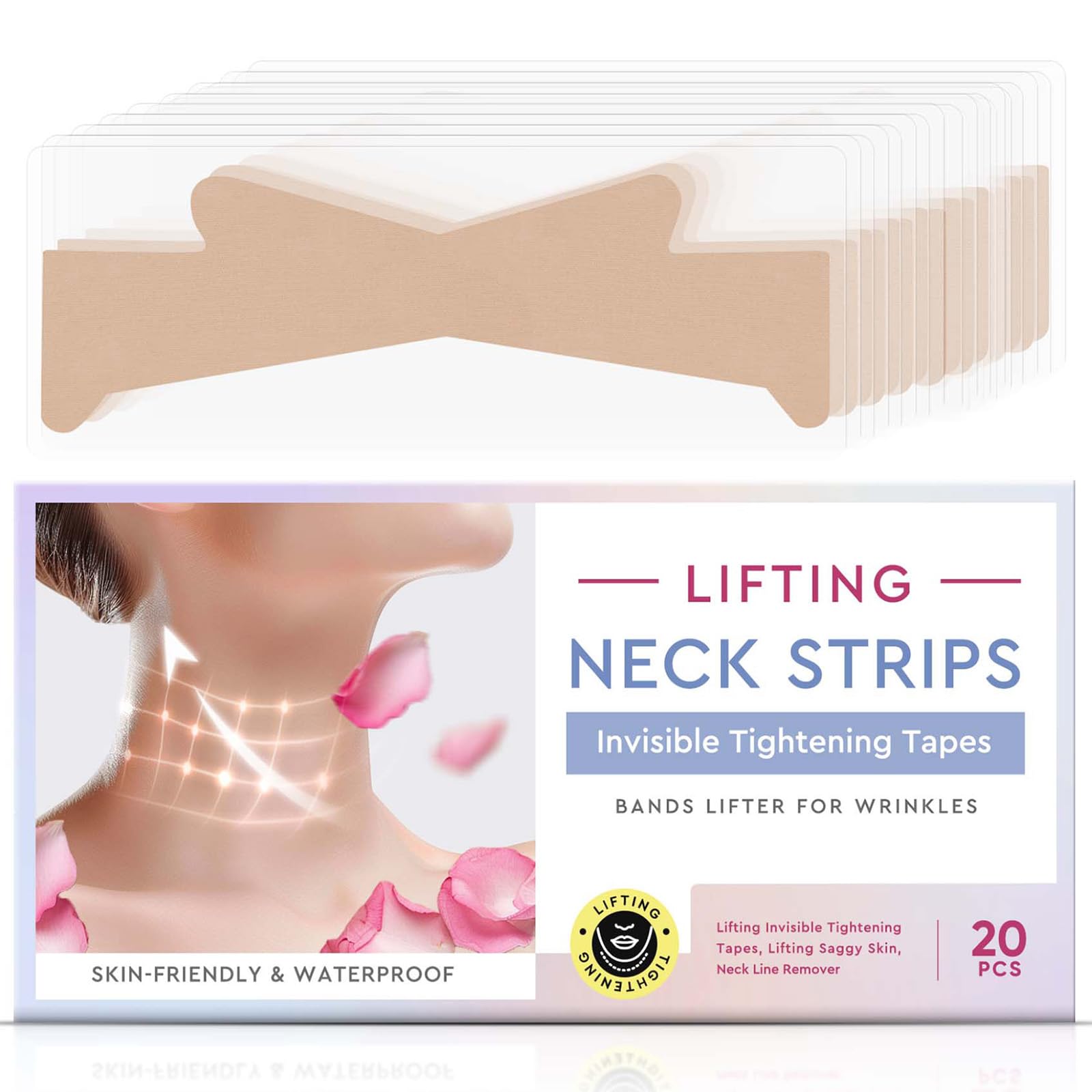 maxboss Neck Wrinkle Patches, High Elastic Neck Strips, Instant Neck Firm Tape for Lifting Loose Skin, Improve Neck Fine Lines Wrinkles, 20 Count