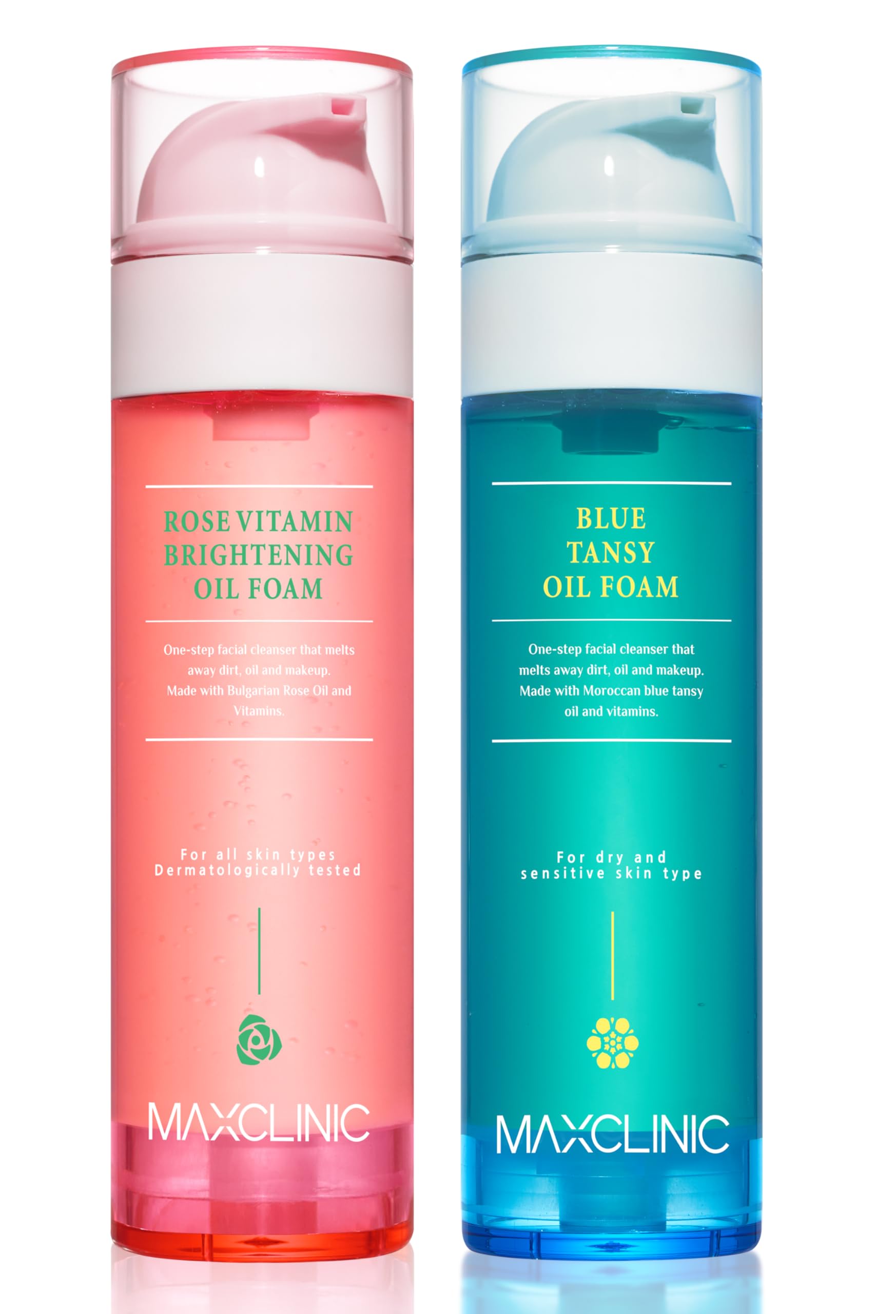 HIGH-END SPA-LEVEL SKINCARE. Unveil revitalized and radiant skin with MAXCLINIC's facial cleansing oil foam gift set. Formulated to reduce fine lines, fade hyperpigmentation, and rejuvenate tired skin, these hydrating facial cleanser duos are the perfect addition to your Korean skincare regimen. CLEANSER BEYOND COMPARE. Achieve the perfect moisture balance effortlessly with our hypoallergenic facial cleansers. Gentle on the skin, our Palm, Babassu, and Coconut-derived cleaning agents are formulated without SLS or SLES. Let the rich bubbles sweep away impurities without causing tightness. MULTIVITAMIN MARVEL. Elevate your skincare routine with encapsulated Multivitamins. Rose Vitamin Korean oil cleanser foam is infused with a 300-fold concentration of 12 Vitamins, while Blue Tansy nourishes with Grape-derived Vitamins and Oat Protein for enhanced hydration. DOUBLE-DUTY CLEANSING. Experience the exceptional formula of our oil-to-foam facial cleanser duo. Plant Oils dissolve makeup and impurities, while Botanical Extracts and Vitamins provide nourishment and hydration, leaving your skin feeling clean and refreshed. BLISSFUL BOTANICAL DUO. Indulge in MAXCLINIC's Rose Vitamin and Blue Tansy oil facial cleansers. Rose Vitamin features Damask Rose Oil and Nordic Berries for hydration and gentle exfoliation, while Blue Tansy includes Moroccan Blue Tansy Oil, making it suitable for all skin types.
