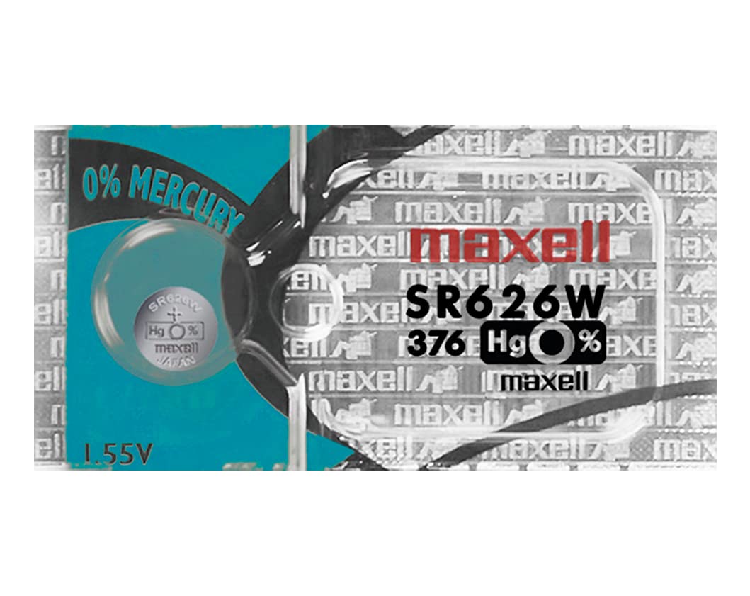 Used as a power source for quartz watches, medical devices, keyless remote entry systems, and more. Blister Package: Original Hologram Packaging. Leakage Resistance Design. Lightweight, high-energy density, and stable discharge battery. Maxell 376 SR626W 0% Mercury 1.55 Nominal Voltage, Silver Oxide Watch Battery.