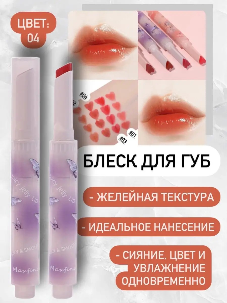 Давно ищете универсальное средство для губ, придающее одновременно увлажнение, цвет и cияние? Поздравляем, вы его нашли! Блеск-желе для губ Maxfine не только смягчит благодаря своей нежной текстуре, но и придаст цвет! Блеск-желе можно использовать и как самостоятельный продукт, и как финишное покрытие поверх карандаша или помады. Это - настоящий мастхэв для любительниц идеальных губ! Не упустите шанс обзавестись этим универсальным продуктом!
