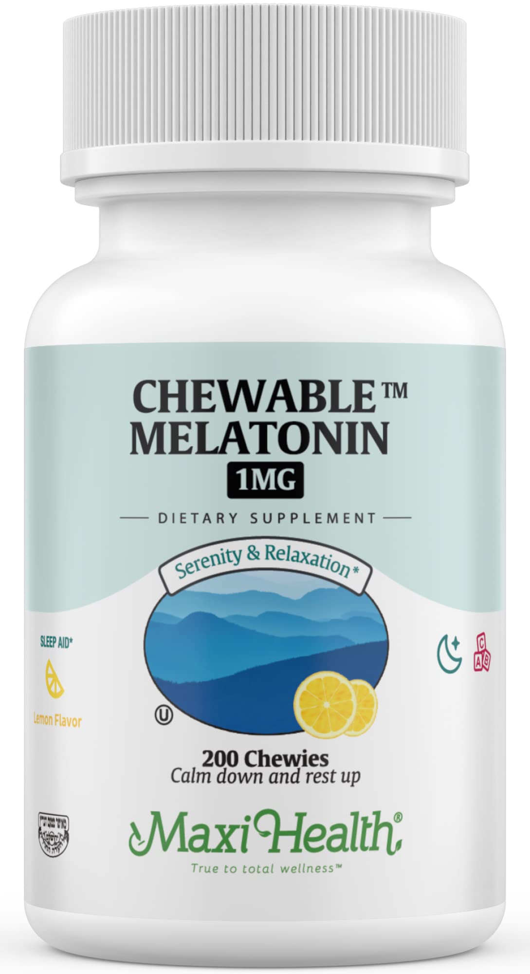 NON HABIT FORMING : Doctor Formulated. Made in a GMP certified facility. Vegetarian. Quality tested for potency and purity. No animal products, soy, wheat, salt, gluten, yeast, corn, milk, artificial flavors, colorings, or preservatives. KOSHER CERTIFICATION : A low sugar chewable. Maxi Health is committed to formulating the best melatonin for sleep. Non-GMO. Certified Kosher by the Udvari Kashruth (UK), the Orthodox Union (OU), and the Badatz. LEMON CHEWABLES : Encourage your sleep cycle with kids adult melatonin chewables. They're a great alternative to taking melatonin gummies for adults or a kids melatonin gummy, and they still taste good. Look forward to a soothing dose at nighttime!. PERFECT FOR PICKY EATERS : Our melatonin for adults melatonin kids formula has a delicious lemon flavor -- perfect for picky eaters! This kids adult melatonin supplement may help support the establishment of proper sleeping patterns. SAFE SUPPLEMENT : Chewable melatonin is a safe natural supplement for adults and kids. Recommended by pediatricians its positive attributes toward circadian rhythm and the sleeping waking cycle in young children.