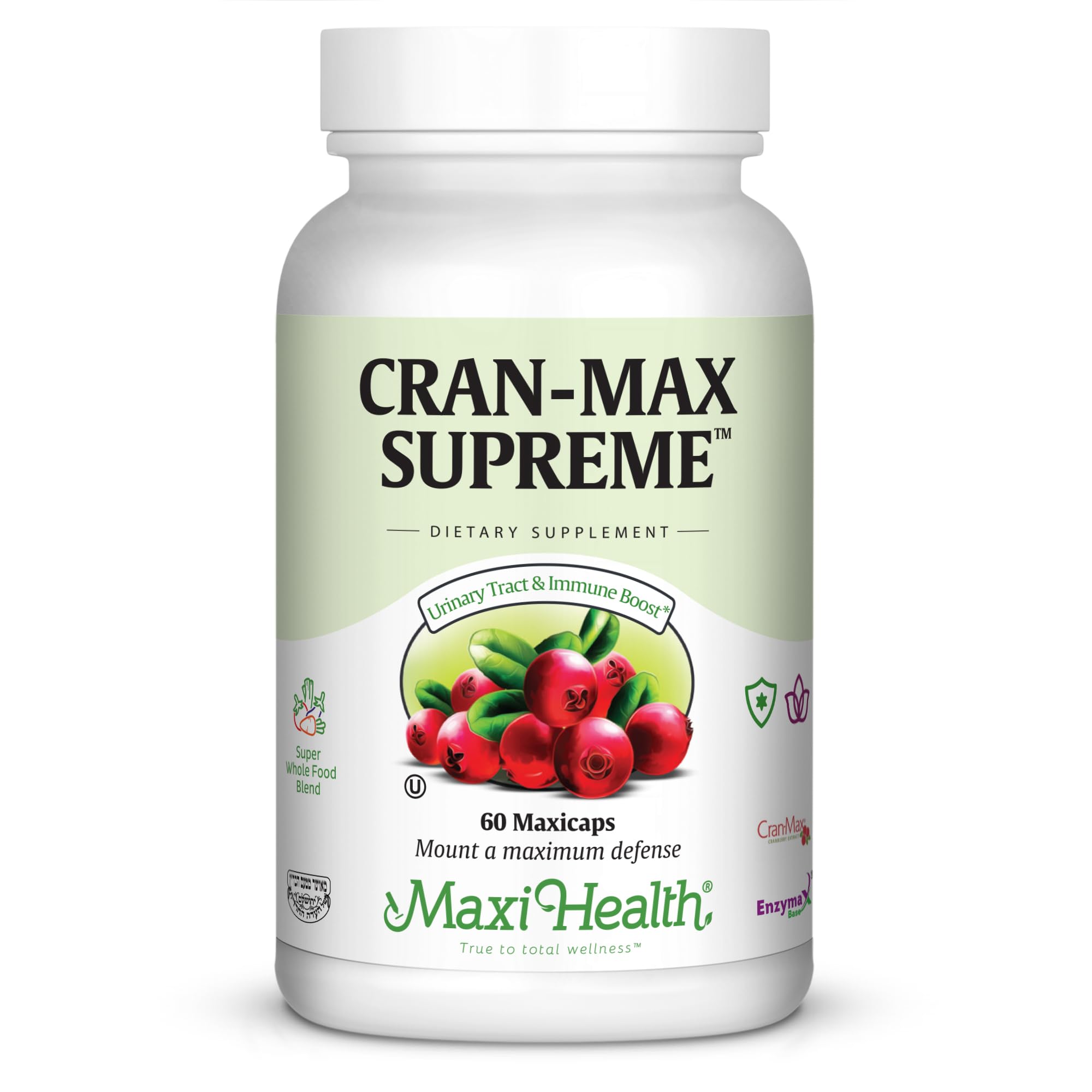 MADE IN THE USA: These cranberry supplement capsules are manufactured in a GMP-compliant facility in the USA, ensuring premium quality and safety backed by Maxi Health's 45 years of expertise in wellness products. PURE, CLEAN FORMULA: The cranberry supplements are made with high-quality, vegetarian ingredients no gluten, artificial colors, flavors, and preservatives for a natural supplement you can trust. GENTLE ON THE STOMACH: Our cranberry supplements for women and men contain Bio-Shield technology that protects cranberry bioactives from stomach acid these cranberry extract capsules are formulated to be easy on the digestive system and improve absorption. BOOSTS IMMUNE FUNCTION: Cranberry extract infused with MSM and oregano leaf powder for added immune support and natural cleansing benefits suitable for boosting your body's defenses year-round. SUPPORTS THE URINARY TRACT: Maxi Health Cran-Max Supreme cranberry capsules use full-spectrum cranberry concentrate for superior urinary tract protection each capsule includes fruit, seeds, skin, and juice to help avoid unwanted substances from adhering to urinary tract walls.