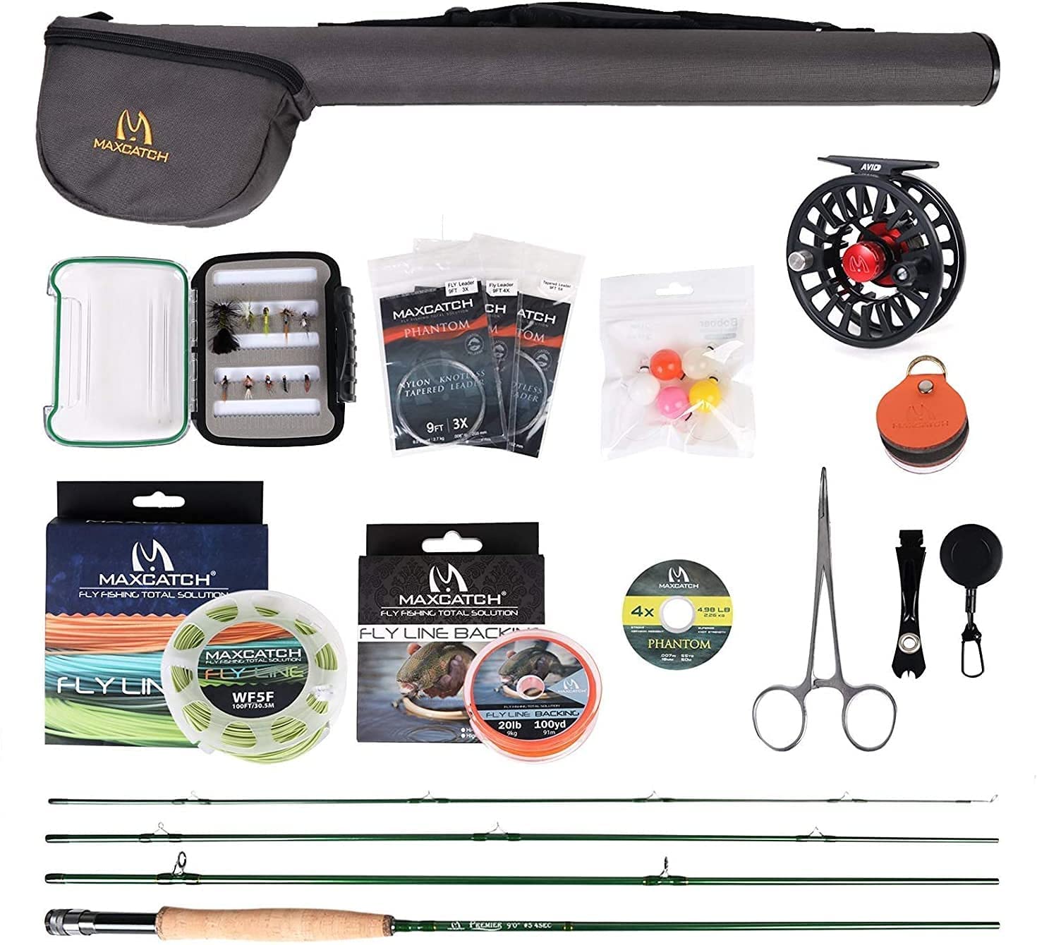 A year guarantee - it offers absolutely security when purchg.We believe in our 13-year-old fly rod factory to control the quality well, so we support our products with a 12-month guarantee, And to offer friendly, easy-to-reach customer service support. This Premier Set contains fly rod, fly roller, fly cord, backing line, offset, tipters, A group of flies with fly box, indicator, tweezers and rod tube. Fly rod: top action rod.9ft, 4 parts of fly rod made of TB carbon for light long throw. 4 folded parts can be easily inserted in the rod tube. Flying roller: aluminum fly roll with large axis design and a stable center disc drag. The coil can be loosened with finely processed and knurled metal screw cap, and light the role of left to the right hand. Flying cords: 9FT leaders, floating 100ft fly cords and 20lbs 100yds Wrap on a roll from backing line. Fly box: waterproof, high -density plastic fly box with 12 bound flying (dried and wet) 10 Rod tube: equipped with a cordura tube with rollers.The rod feed for storing the accessories.flying, box rod tube- a durable and comfortable transport tire with roller to keep everything together.12 bound flies fly in a waterproof fly box.A neoprene roller bag protects the role.Pre-loaded aluminum flying roller-hybrid cork and teflon slices and stainless steel disc pulling power system with a unidirectional coupling to offer smoothing and rapid traction.Middle axis coil and super light housing design- a perfect balance between backing line capacity and fast cords, and also reduce the memory of the line.Exclusive Maxlinq Blank Technology - Pure IM8 30T carbon fiber.With mixed 5 layers of carbon, including reinforced carbon layer for muscle, at least 20 of the strength.The top action design of Ruteblank makes more distance and translation.Everything you need for fly fishing- these most effective fly fishing combos is designed for beginners to quickly fish them.Perfect for beginners to fly fishing with scarce budget.This is also cheap for fly fishermen than backup combo if you improve the professional outfits.It contains a high-made fly rod, an aluminum fly roll with fly cords, backing line and leaders.One-year guarantee and lifelong repair agency , We Maximumcatch As a 13-year-old fly rod factory, offer ""no dispute"" guarantee for all of our rods.If you are not 100 satisfied with our rods, you can return them at any time.EIN JAHR GARANTIE - es bietet beim Einkauf absolut Sicherheit an. Wir glauben an unserer 13-jährige Fliegenrutenfabrik, die Qualität gut zu kontrollieren, also, wir unterstützen unsere Produkte mit 12 Monate Garantie, und freundlicher, einfach zu erreichendem Kundendienst-Support zu bieten. Diese Premier Set enthält Fliegenrute, Fliegenrolle, Fliegenschnur, Backing Linie, Vorfächer, Tippet, eine Gruppe von Fliegen mit Fliegenbox, Anzeiger, Pinzette und Rutenrohr. Fliegenrute: Spitzenaktion-Rute. 9ft, 4 Teile Fliegenrute aus TB Carbon für leichten langen Wurf entwerfen. 4 gefaltete Teile kann man leicht im Rutenrohr einsetzen. Fliegenrolle: Aluminum Fliegenrolle mit großer Achse-Design und ein stabiler Center-Disc-Drag. Mit fein verarbeitet und gerändelte Metall-Schraubkappe kann die Spule lockert werden, und leicht die Rolle von linker nach rechter Hand geändert werden. Fliegenschnüre: 9ft Vorfächer, schwimmende 100ft Fliegenschnüre und 20lbs 100yds von Backing Linie auf eine Rolle wickeln. Fliegenbox:wasserdichte, hochdichte Plastik Fliegenbox mit 12 gebundene Fliegen (getrocknet und nass) 10 Rutenrohr: ausgestattet mit einem Cordura-Rohr mit Rollen Beutel. Das Rutenfutteral für die Aufbewahrung des Zubehörs.FLIEGEN, BOX RUTENROHR- Eine haltbare und bequeme Transportrutenrohr mit Rolle, um alles zusammen zu halten. 12 gebundene Fliegen in einer wasserdichte Fliegenbox. Eine Neoprene Rollentasche schützt die Rolle. VORGELADENE ALUMINUM FLIEGENROLLE- Hybrid Kork und Teflonscheiben und Edelstahl Scheiben-Zugkraftssystem mit einer unidirektionale Kupplung, den glättende und rasche Zugkraft anzubieten. Mitte Achse Spule und superleichter Gehäusedesign- Ein perfektes Gleichgewicht zwischen Backing Line Kapazität und schnelle Schnüre abzuholen, und auch der Speicher der Zeile zu verringern. EXKLUSIVE MAXLINQ BLANK TECHNOLOGY - Pure IM8 30T Kohlefaser. Mit gemischten 5 Schichten Kohlenstoff einschließlich verstärkter Kohlenstoffschicht für Muskel, mindestens 20 der Festigkeit zu steigen. Das Spitzenaktion-Design von Ruteblank macht mehr Distanz und Übersetzung. ALLES, WAS SIE BENÖTIGEN FÜR FLIEGENFISCHEN- diese effektivste Fliegenfischen Combos wird für Anfänger entworfen, um Sie schnell zu fischen. Perfekt für Anfänger zum Fliegenfischen, die mit knappen Budget. Das ist auch günstig für Fliegenfischer als Backup-Combo, wenn Sie die professionelle Outfits aufbessern. Es Enthält eine hoch leistete Fliegenrute, eine Aluminum-Fliegenrolle mit Fliegenschnüre, Backing Linie und Vorfächer vorladen. EIN-JAHR-GARANTIE und lebenslange Reparaturgarantie,Wir Maximumcatch als 13-jährige Fliegenrute-Fabrik, bieten ""Kein Streit"" -Garantie für alle unsere Ruten an. Wenn Sie mit unseren Ruten nicht 100 zufrieden sind, können Sie sie jederzeit zurückgeben.MAXIMUMCATCH Premier Fliegenrute und Avid Rolle Combo komplete 9' Fliegenfischen Outfit mit Angelausrüstung 6 wt -9' Half-Handgriff Rute 5 6 Fliegenrolle