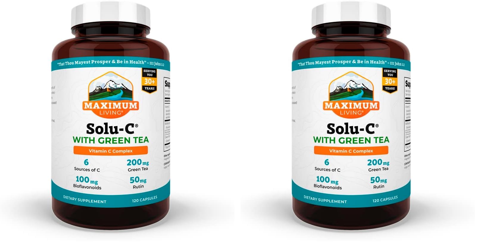 Maximum Living Solu-C with Green Tea - Vitamin C with Bioflavonoids and Rutin - Immune Support -120 Capsules Each - Pack of 2
