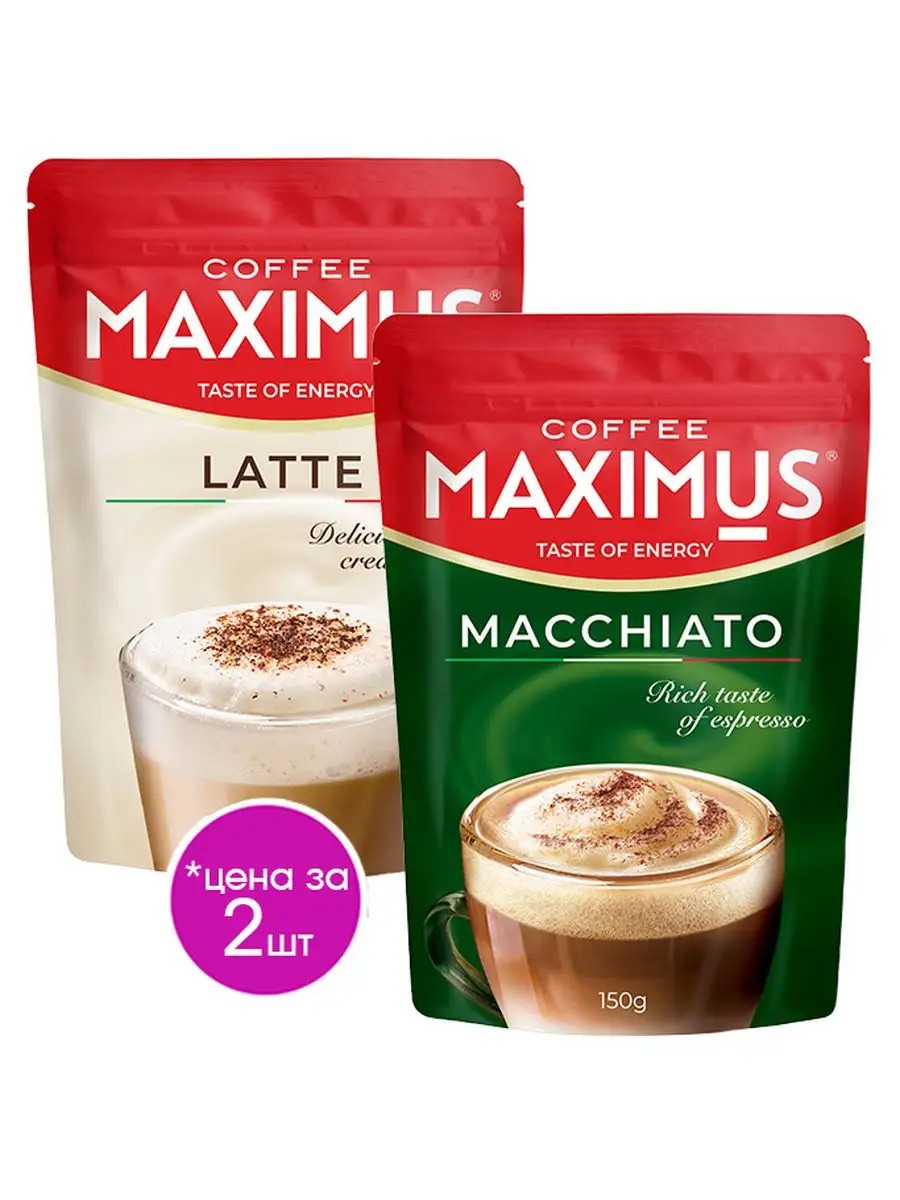 The set includes 2 types of coffee drinks: Latte and Macchiato, 150 grams each.