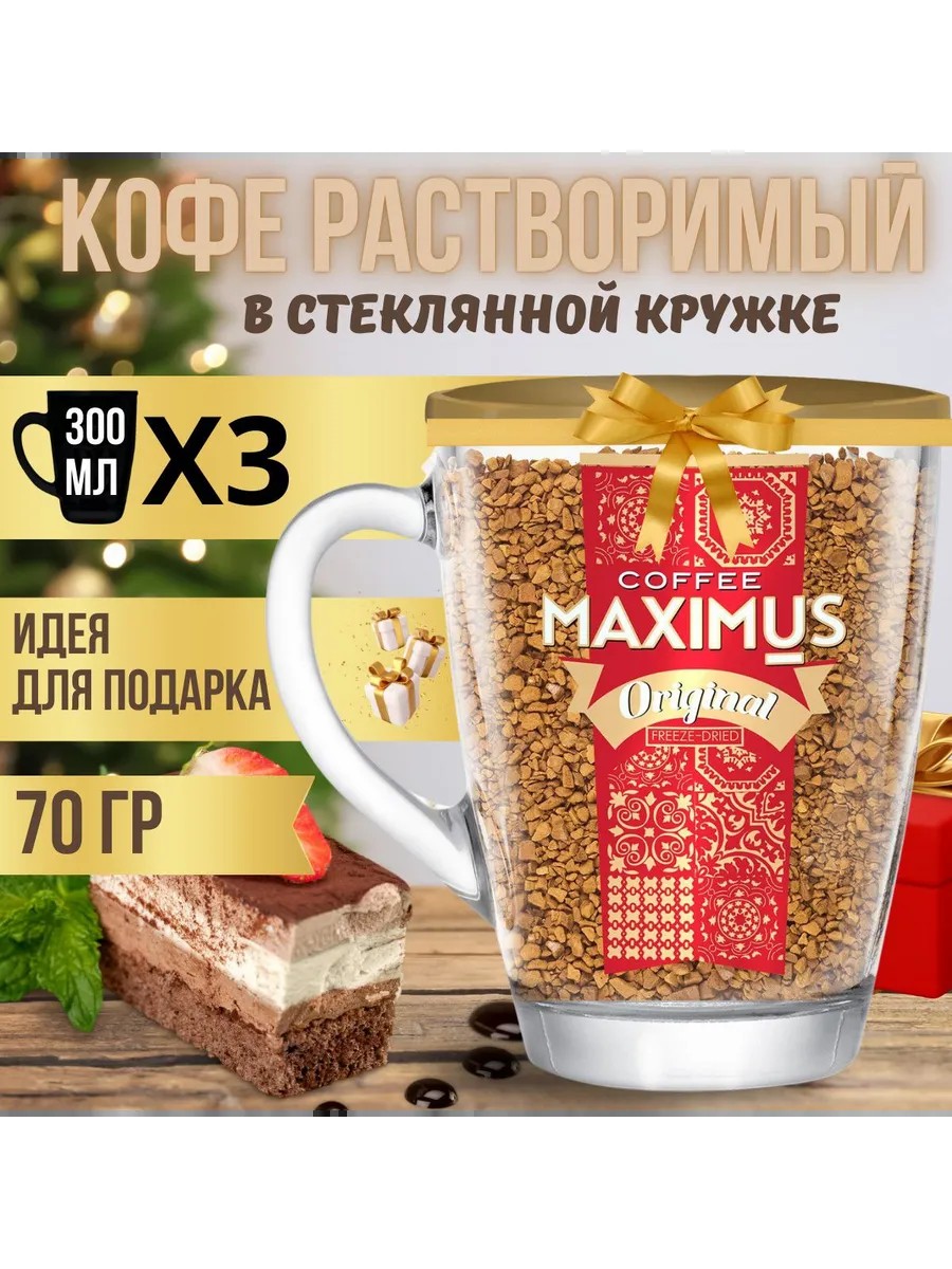 MAXIMUS Кофе растворимый Original в стеклянной кружке 3 шт.