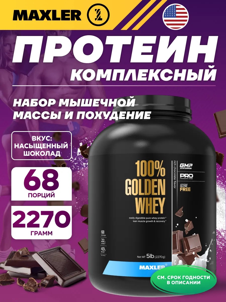 Годен до 31.03.2027. Сывороточный протеин 100% Golden Whey 2270 г, Насыщенный шоколад. Maxler 100% Golden Whey - этот продукт содержит 100% ультрафильтрованный сывороточный протеин, чтобы вы могли достичь максимальных результатов. Продукт состоит только из 100% чистого концентрата, изолята и гидролизата сывороточного протеина. Эти ключевые ингредиенты быстро усваиваются организмом, обеспечивая его важным белком. Maxler 100% Golden Whey - это не просто протеиновый напиток. Это профессиональное спортивное питание, которое помогает не только увеличить мышечную массу, но и сжечь жир, достичь максимальных результатов в тренировках и обеспечить восстановление мышц после активных физических нагрузок. Благодаря своим уникальным свойствам, протеиновый коктейль идеально подходит для тех, кто стремится к похудению и набору мышечной массы. Богатый белком, Maxler 100% Golden Whey является незаменимым продуктом для спортсменов, которые стремятся повысить свою силу, выносливость и контроль веса. Не упустите возможность добавить эту пищевую добавку в свою тренировочную программу! Maxler 100% Golden Whey - это мощный инструмент для наращивания мышц, как для мужчин, так и для женщин. Независимо от ваших фитнес-целей - будь то качество тела или сушка - Maxler 100% Golden Whey поможет вам достичь ваших максимальных результатов. Кроме того, этот протеиновый порошок обеспечивает важные незаменимые аминокислоты, которые необходимы для восстановления после тренировок. Он также способствует увеличению обмена веществ и обеспечивает необходимую энергию для активных физических нагрузок. Макслер 100% Голден Вей - это ваш идеальный выбор для достижения ваших фитнес-целей. Включите его в свою диету прямо сейчас и узнайте, как это может изменить ваш физический потенциал. Рекомендации по применению: для получения одной порции смешайте 33 г порошка (1 мерную ложку) с 180-240 мл воды, молока или вашего любимого напитка. Для достижения желаемой консистенции можно варьировать количество жидкости.