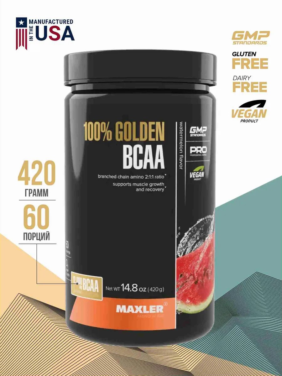 Maxler Аминокислоты 100% Golden BCAA порошок арбуз, 420 грамм – комплекс аминокислот для улучшения работы мышц и обеспечения роста мышечной ткани.