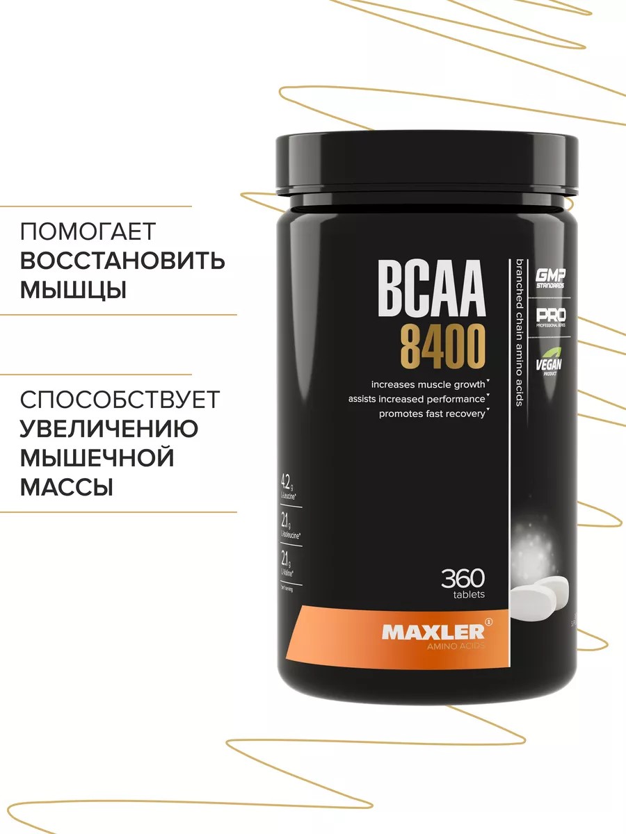 Maxler BCAA 8400 360 шт представляет собой три незаменимые аминокислоты с разветвленными цепочками: Л-Лейцин, Л-Изолейцин и Л-Валин в классической пропорции 2:1:1. Прием аминокислотного комплекса БЦА от Макслер необходим любому атлету, профессиональному спортсмену и бодибилдеру любителю так как они играют важную роль в построении мышц, стимулируют выработку инсулина, способствуют синтезу белка в организме, росту и поддержанию мышечной массы. БЦАА снижают болезненные ощущения и риск повреждения мышц во время физических нагрузок, ускоряют восстановление мышц после тяжелых и интенсивных тренировок, снижают усталость. БЦА служат источником энергии, повышают выносливость и силовые показатели, повышают аэробную и анаэробную производительность, если их принимать регулярно. Помогают бороться с подкожным жиром, способствуют улучшению мышечного рельефа, сохранению мышечной массы при сушке и похудении. Рекомендации по применению Maxler BCAA 8400 : принимать 1 порцию (6 таблеток) в день. Принимайте БСАА 8400 до и после тренировок для увеличения мышечной массы, выносливости, а также быстрого восстановления.Для удобства приготовления спортивных коктейлей рекомендуем воспользоваться фирменным шейкером для спорт пита.Выбирая Maxler, вы выбираете качество.