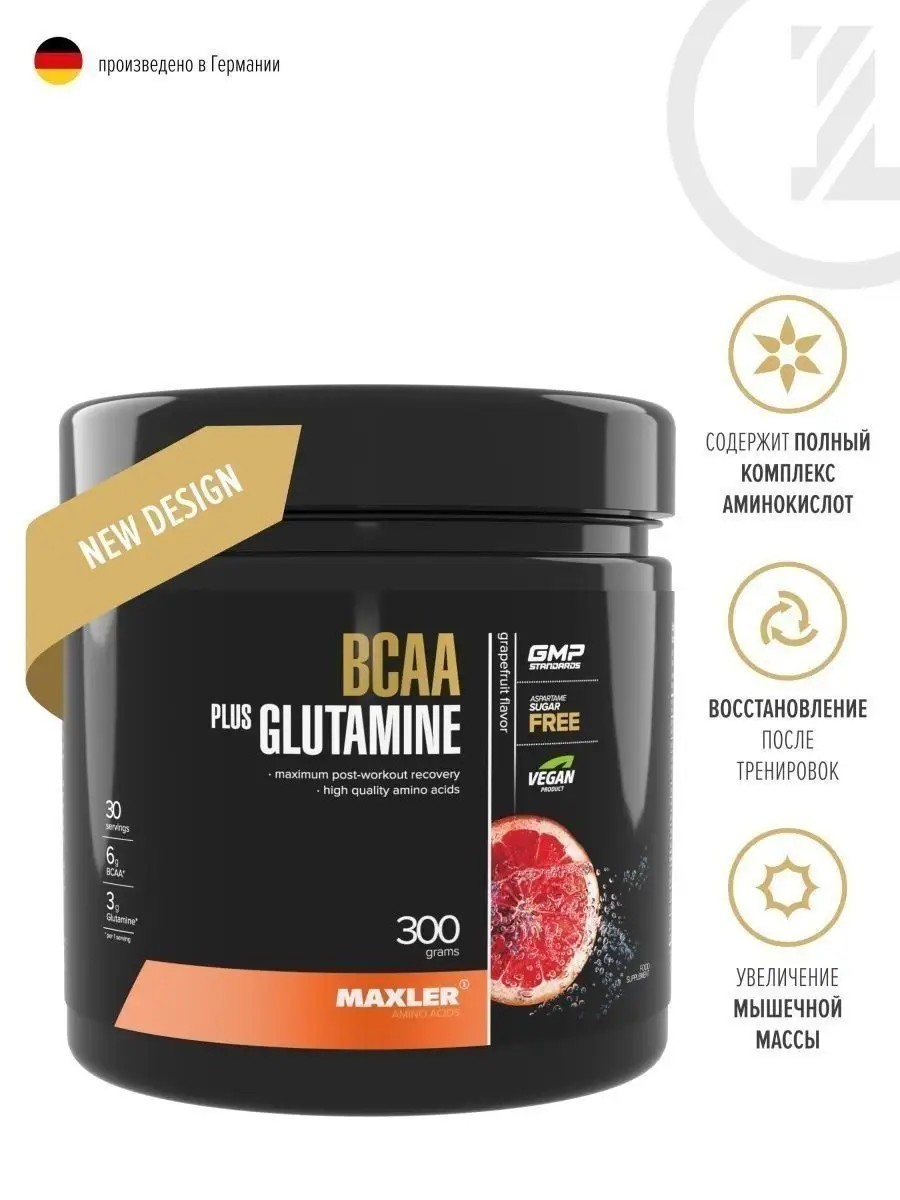 Аминокислоты Maxler BCAA + Glutamine 300г со вкусом Грейпфрут. Поскольку Glutamine / Глютамин и BCAA / БЦАА аминокислоты, которые играют важную роль в восстановлении мышц, то продукт Maxler BCAA + Glutamine отличная добавка для любого атлета. Данный продукт снабжает организм самой распространенной аминокислотой в организме человека - Глютамином, а также незаменимыми аминокислотами с разветвленными цепями - Лейцином, Валином и Изолейцином. Глютамин защищает мышцы от катаболизма, помогая нарастить и сохранить мышечную массу. BCAA играют важную роль в росте и развитии мышц, а также способствуют быстрому восстановлению после интенсивных физических нагрузок. Maxler BCAA + Glutamine / Макслер БЦАА + Глютамин - уникальный продукт для дополнительной энергии и восстановления вашего организма, который представлен в нескольких натуральных вкусах. Рекомендации по применению: для получения 1 порции смешайте 10 г. порошка с 250 мл. воды.