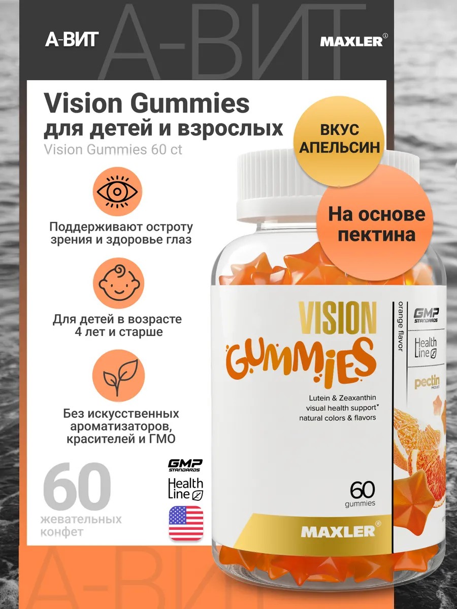 | Торговое наименование | Биологически активная добавка к пище МАКСЛЕР «Вижн Гаммиз» вкус апельсин / MAXLER «Vision Gummies» orange flavor, жевательные конфеты по 3 г № 60 |