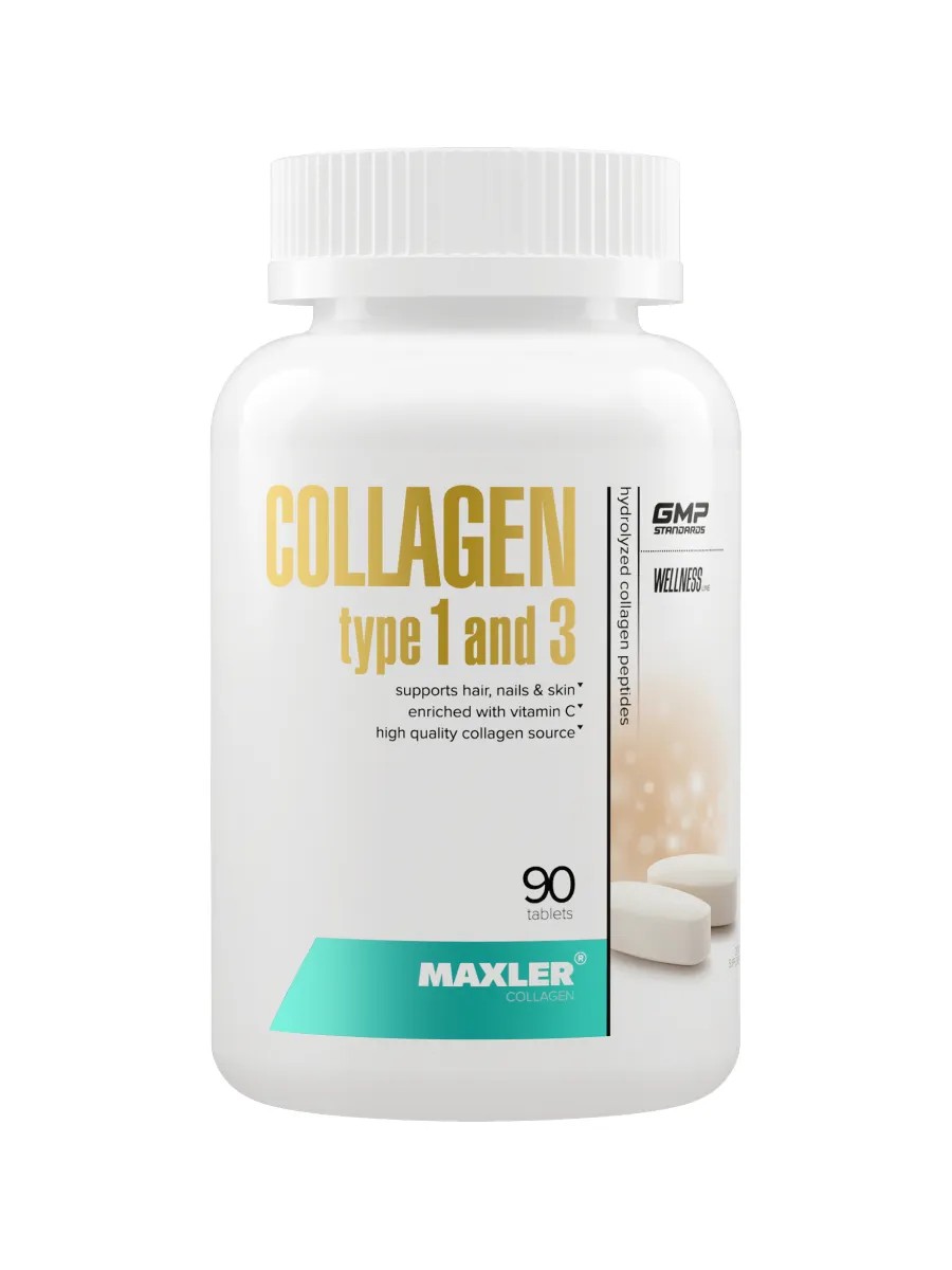 Наш организм самостоятельно вырабатывает коллаген, но его выработка с возрастом уменьшается, поэтому важно дополнительно принимать коллаген для восполнения его запасов. Коллагены типа 1 и 3 составляют 90% всех коллагенов в организме и отвечают за эластичность и крепость суставов, костей, кожи, волос и ногтей. Также Collagen Type 1 and 3 способствует выработке глицина, который участвует в построении мышц и сжигании жира во время сна. Продукт содержит витамин С, который улучшает усвоение коллагена. Maxler Collagen type I & III содержит говяжий коллаген Peptan - мировой лидер коллагенов с научно доказанной эффективностью для здоровья человека. Рекомендации по применению БАД: принимайте 1-2 порции (3-6 таблеток) ежедневно на голодный желудок не менее чем за 30 минут до еды. Не принимайте одновременно с другими белковыми добавками.