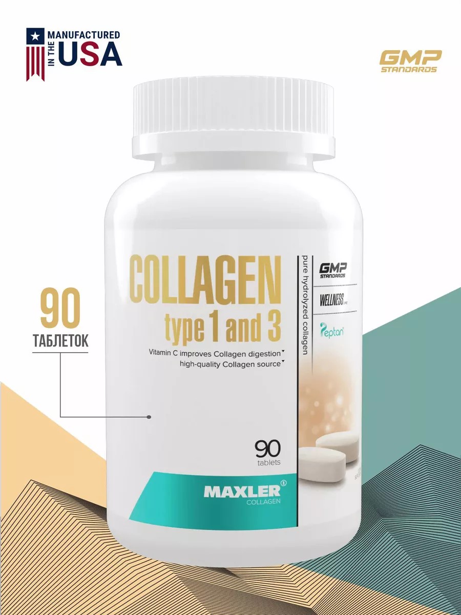 Коллаген Maxler Collagen 1 и 3 типа, 90 таблеток – биологически активная добавка, созданная для укрепления костей и суставов, а также для поддержания тонуса кожи, укрепления волос и ногтей.