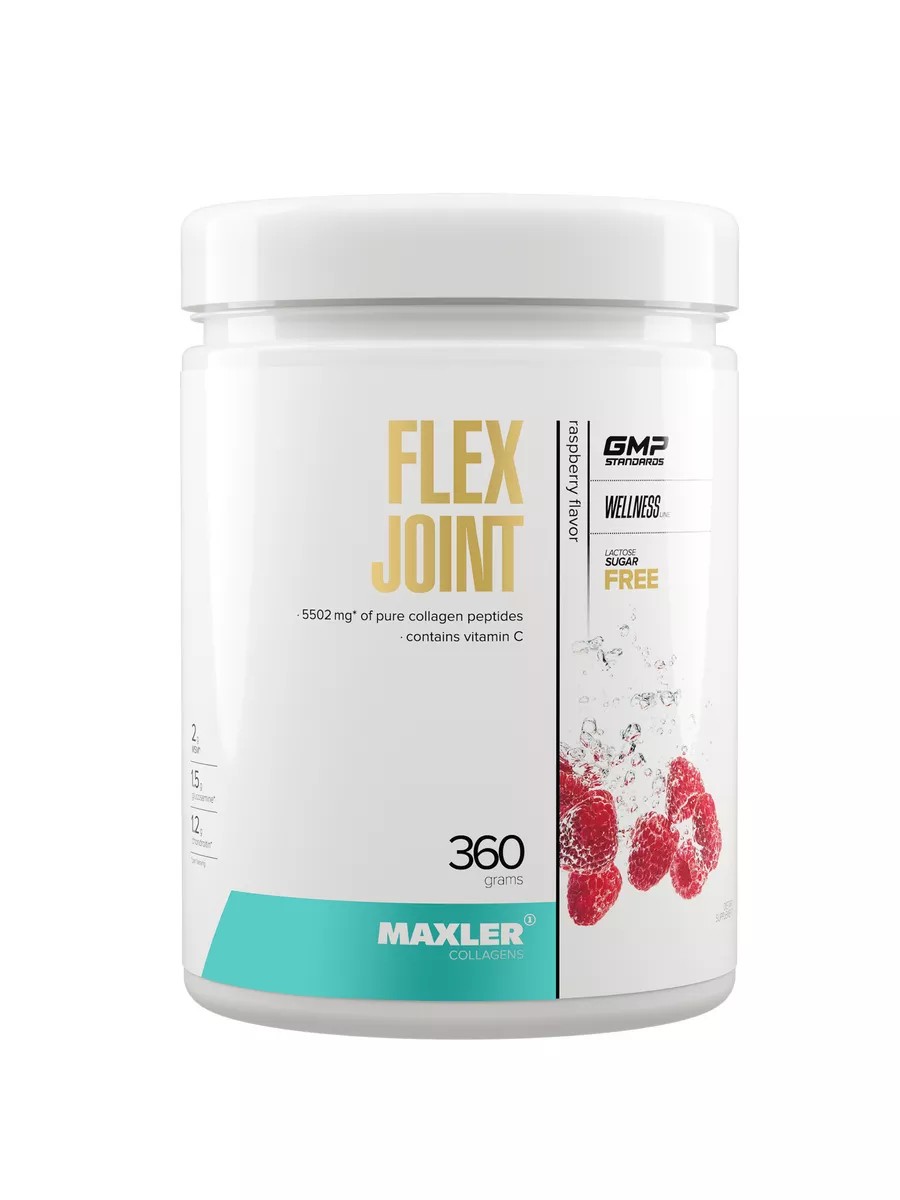 Maxler Flex Joint - это комплекс, сочетающий наиболее эффективные ингредиенты для укрепления костей, связок и суставов, дополняющие действие друг друга. Добавка содержит оптимальное соотношение глюкозамина и хондроитина, которые являются ключевыми компонентами хрящевой ткани и служат строительным материалом для связок и суставов. В состав продукта входит органическая сера МСМ, оказывающая противовоспалительное и обезболивающее действие. Важным ингредиентом комплекса является чистый гидролизованный коллаген, необходимый для синтеза соединительной ткани и обеспечения ее эластичности и прочности. Формула обогащена витамином С, который улучшает усвоение глюкозамина и хондроитина и способствует выработке организмом собственных запасов коллагена. Flex Joint идеально подходит как для профилактики, так и для комплексного лечения болевых ощущений в связках и суставах. Польза: 1. Flex Joint поддерживает здоровье связок и суставов. Глюкозамин и хондроитин стимулируют выработку синовиальной (суставной) жидкости, необходимой для питания и смазки суставов. Совместно с витамином С они также сохраняют влагу в хрящевой ткани, что препятствует ее разрушению. Коллаген – важный компонент соединительной ткани организма, который способствует эластичности и гибкости связок, увеличивает прочность костей и заметно снижает риски трещин и переломов. 2. Flex Joint оказывает противовоспалительное и обезболивающее действие. Flex Joint содержит эффективную дозу органической серы МСМ, которая обладает антисептическими и болеутоляющими свойствами. Она снимает воспаление связок и суставов, уменьшает отечность и помогает бороться со скованностью и болезненностью движений. 3. Flex Joint ускоряет восстановление после травм и повреждений. Эффективное сочетание компонентов комплекса Flex Joint стимулирует кровообращение в соединительной ткани и ускоряет ее обновление, что способствует скорейшему восстановлению связок и суставов после травм, ушибов и растяжений. Также активные ингредиенты добавки отвечают за регенерацию хрящевой и костной тканей, благодаря чему ускоряют заживление переломов и трещин. Поэтому Flex Joint станет наилучшей поддержкой опорно-двигательного аппарата в период восстановления после травм. Рекомендации по применению: Для получения одной порции смешайте 1 мерную ложку (12 г) Flex Joint с 250 мл воды.