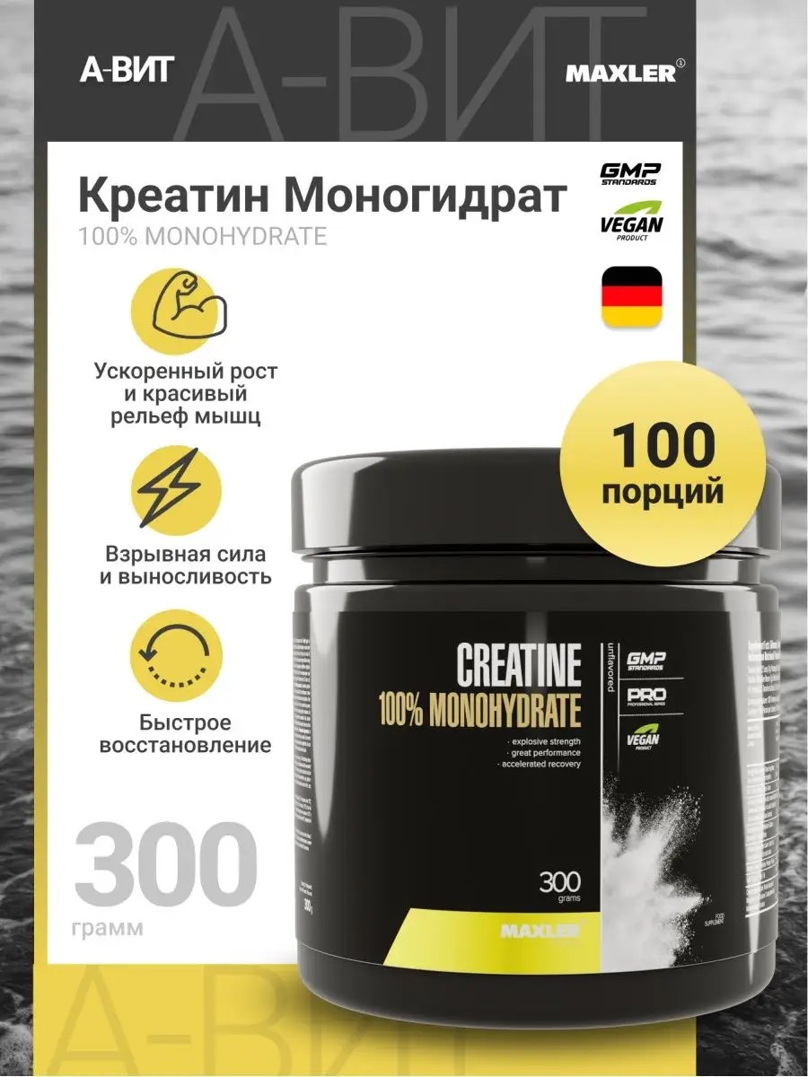 Креатин моногидрат Maxler 100% Creatine Monohydrate - 100%-й моногидрат креатина в порошке. Креатин – это аминокислота, которая участвует в энергетическом обмене в мышечных и нервных клетках и естественно присутствует в организме человека, формируясь в печени, почках, поджелудочной железе из аминокислот. Основная функция креатина - обеспечение организма энергией в период серьезных физических нагрузок. Креатин способствует снижению мышечной усталости, помогает быстрее набрать массу, улучшая мышечный потенциал. Как один из основных составляющих спортивного питания креатин позволяет повысить интенсивность тренировок и увеличить силовые показатели, а также ускорить рост сухой мышечной массы при выполнении физических упражнений. Криатин как профессиональное питание необходим не только спортсменам и тем, кто стремится вести здоровый образ жизни, но и вегетарианцам, так как потребность в нем присутствует у любого организма и восполнить ее без потребления мяса и рыбы невозможно. Креатина моногидрат характеризуется максимальным содержанием действующего вещества, является самой распространенной формой креатина. Креатин порошок не имеет вкуса, обладает стабильностью при хранении, изготовлен без использования добавок, ароматизаторов, сахара или подсластителей. Maxler Креатин моногидрат порошок улучшает энергетический потенциал мышц, позволяя увеличить интенсивность тренировок и силовые показатели. Спортивный креатин способствует накоплению воды внутри мышечных волокон, повышению синтеза белка в организме и увеличению мускулатуры за счет большего показателя силы. Для наиболее эффективного усвоения креотина мышечными клетками его следует принимать с большим количеством жидкости. Для получения порции разведите 3 гр порошка (1/2 мерной ложки) в 200 мл. жидкости.