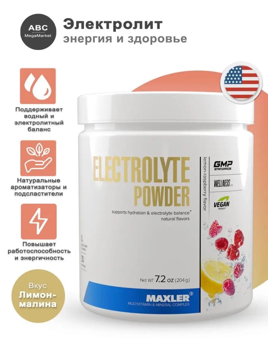 Добавка содержит электролиты для поддержания здорового водного баланса. БАД помогает восполнить потраченные во время тренировок запасы электролитов, воды и энергии. Принимать электролиты можно при больших потерях жидкости: в жаркую погоду, интенсивном потоотделении. Идеальный баланс кальция, магния, хлорида, натрия и калия способствует хорошему самочувствию и позволяет быть энергичным в течение всего дня. Комплекс поддерживает ваш активный образ жизни и повышает работоспособность. Натрий, кальций, калий, хлор и магний - все это электролиты. Они помогают поддерживать баланс воды в теле человека. Так Натрий регулирует баланс воды вне клеток, позволяет мышцам реагировать на нервные импульсы. Калий (цитрат калия) поддерживает баланс воды внутри клетки, калий и натрий - работают вместе, поэтому важно следить за их совместным поступлением в организм. Магний ( цитрат магния) отвечает за нормальную работу мышц и нервной системы. Кальций ( лактат кальция) обеспечивает прочность костей и зубов, участвует в проведении нервного импульса. Electrolyte powder Maxler - идеальный баланс калия, натрия, хлорида и кальция - они находятся в форме солей, которые максимально хорошо усваиваются организмом, витамины и минералы, водный баланс. В составе порошок электролиты присутствует комплекс микроэлементов - медь, фосфор, хром, молибден, селен, йод - что является безусловным преимуществом. Рекомендации по применению: смешайте 1 порцию (6,8 г) с 350-470 мл воды.
