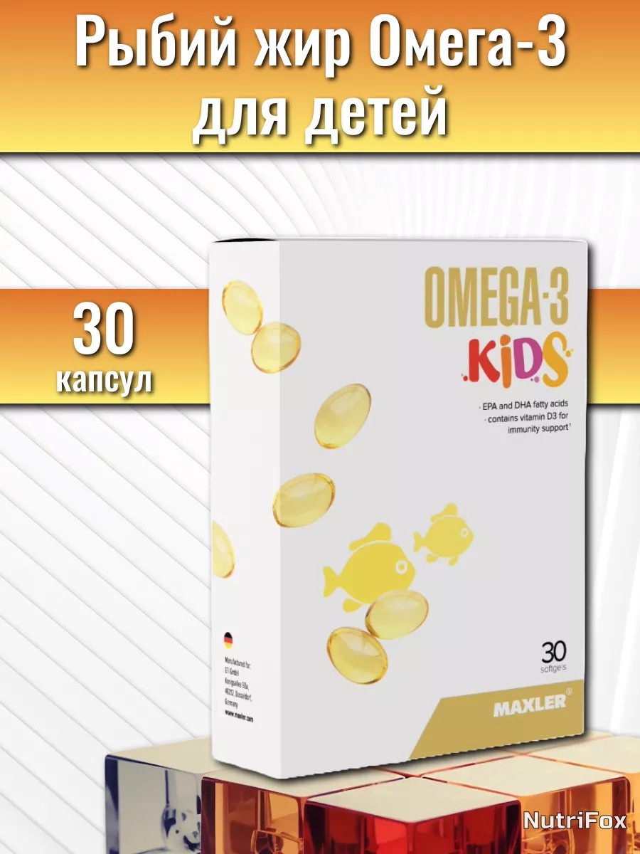 Maxler Рыбий жир Омега-3 для детей, 30 капсул