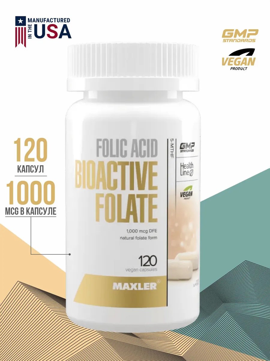 Maxler Фолиевая кислота Bioactive Folate 1000 мкг, 120 капсул – биологически активная добавка, способствующая здоровому росту и развитию клеток.