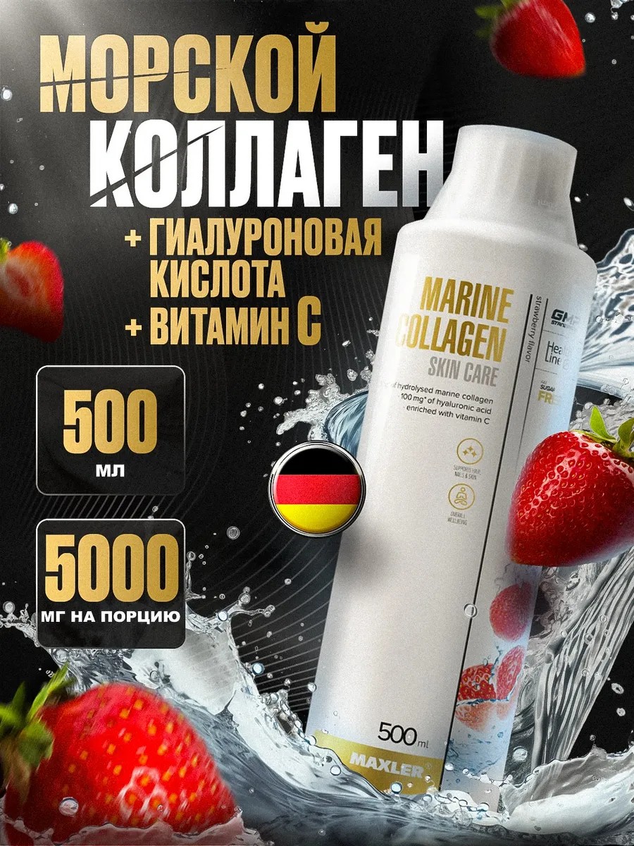 Макслер марине коллаген с гиалуроновой кислотой (500 мл, клубника) — это жидкая биодобавка, созданная для поддержания здоровья кожи и борьбы с признаками старения. Продукт содержит три ключевых компонента: морской коллаген, гиалуроновую кислоту и витамин С, которые вместе улучшают упругость, увлажнение и внешний вид кожи.