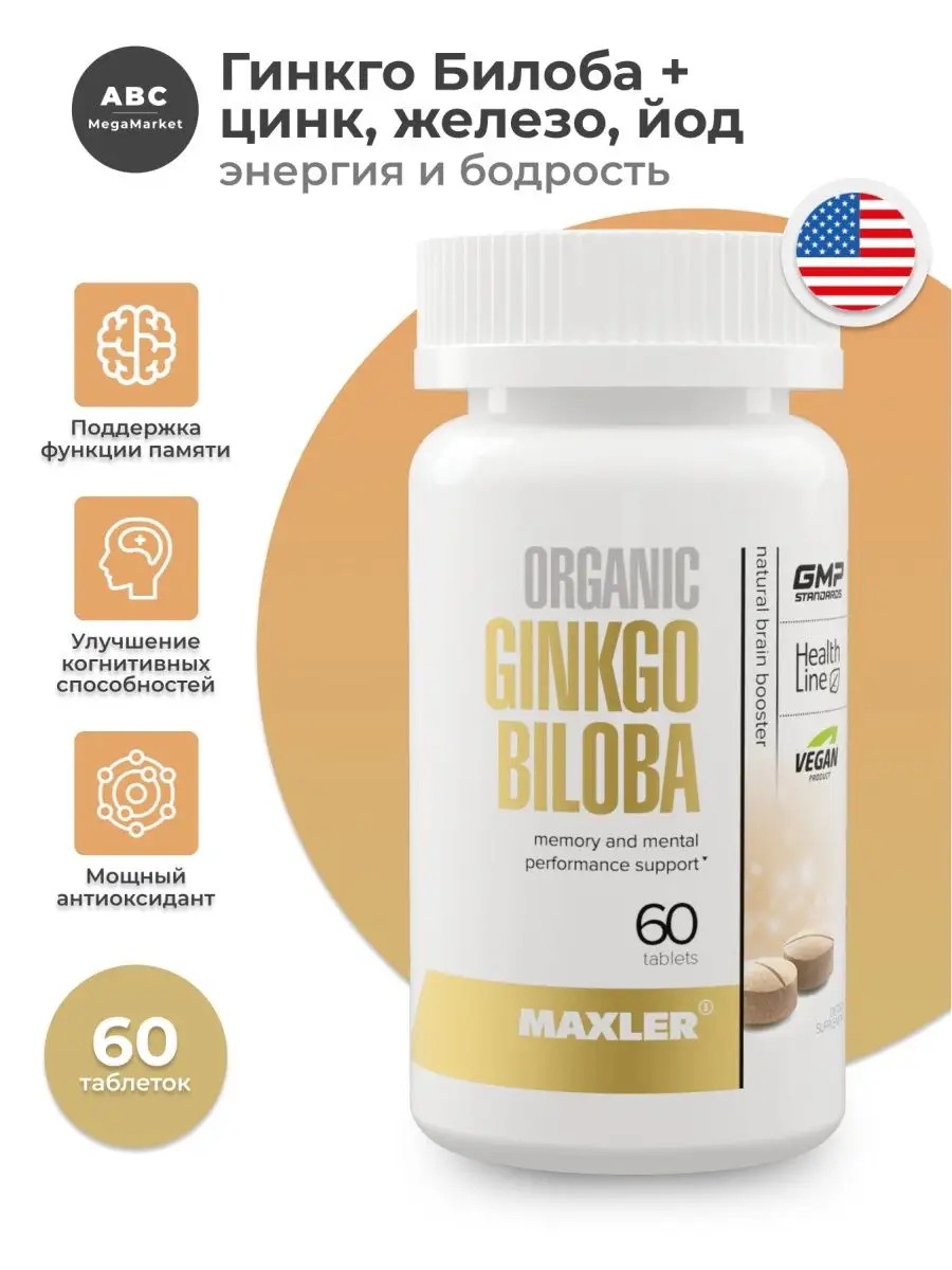 Гинкго Билоба Maxler биологически активная добавка, созданная для улучшения работы мозга. Гинкго Билоба – растение, известное по своим лечебным свойствам. Экстракт гинкго билоба трава обладает антиоксидантным свойством, защищая клетки организма от разрушения. Вещество укрепляет сосуды, стимулируя кровообращение, в том числе и в мозг. Минералы цинк, железо и йод оказывают противовоспалительное действие и регулируют кровообращение, усиливая действие растения. Гинкго билоба в капсулах сохраняет познавательные функции мозга, замедляя его старение. БАД улучшает память и концентрацию внимания, активизирует мыслительные процессы. Также гинго-билоба поддерживает здоровье всего организма, блокируя действие оксидантов и снижая воспаление. Она контролирует циркуляцию крови, обеспечивая организм необходимыми питательными веществами и предотвращая риск развития анемии и заболеваний щитовидной железы. В составе добавки гинко билоба, произведенной в США, натуральные компоненты. Сбалансированный состав обеспечивает эффективное усваивание компонентов в организме. Веганские таблетки не содержат лактозу и глютен. В нашем магазине вы всегда можете купить гинкго билоба таблетки по приемлемой цене и с высоким качеством. Рекомендации по применению: принимать по 1 таблетке в день во время приёма пищи.