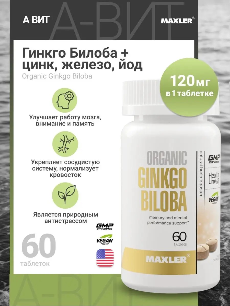 maxler Макслер Гинкго Билоба Ginkgo Biloba 120 мг для памяти