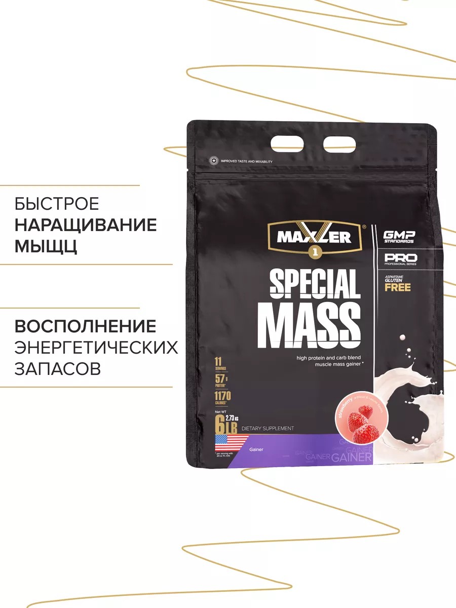 Гейнер Maxler Special Mass Gainer 2730 г со вкусом Клубника - это научно разработанная и чрезвычайно мощная формула для набора массы, предназначенная для активных людей, которым необходимы высококачественные протеины, повышенное количество сложных углеводов и питательных веществ для оптимального здоровья и работы мышц. Этот продукт создан специально для людей, которым трудно набрать массу, а также для спортсменов, которым необходима высокоуглеводная пища в дополнение к программе тренировок на выносливость. В каждой порции Макслер Спешиал Масс Гейнер смешанной с 600 мл молока 1% жирности содержится 57 г. белка; 1.2 г. моногидрат креатина; микро- и макроэлементы: натрий, калий, кальций, железо; 5 различных протеинов высшего качества, таких как концентрат сывороточного белка, изолят сывороточного белка, изолят молочного белка, мицеллярный казеин и гидролизат сывороточного белка. Carbo Blend обеспечивает постепенное высвобождение питательных веществ, критически важных для этапа набора массы, обеспечивая ваши мышцы топливом для роста и ускоряя его. Мощная смесь BCAA помогает повысить работоспособность, предотвратить разрушение мышечной ткани и ускорить восстановление. Enzyme Blend премиум-класса улучшает пищеварение и гарантирует, что вы получите максимум ценности от вашего протеинового напитка. И все это в сочетании с великолепным вкусом! Рекомендации по применению Special Mass Gainer 6 lb Strawberry: в качестве диетической добавки смешайте 4 мерных ложки (240 г) Maxler Special Mass Gainer с 500-600 мл воды или молока. Для достижения наилучших результатов употребляйте одну полную порцию (240 г) Макслер Спешиал Масс Гейнер сразу после интенсивной тренировки. В нетренировочные дни рекомендуется употреблять 2 мерные ложки (120 г) утром и еще 2 ложки вечером, предпочтительно между приемами пищи. Смешайте каждую половину порции с 240 мл воды или молока. Вы можете использовать больше или меньше жидкости для достижения желаемой консистенции. Дополнительные порции можно употреблять в течение дня для удовлетворения суточной потребности в протеине и калориях.