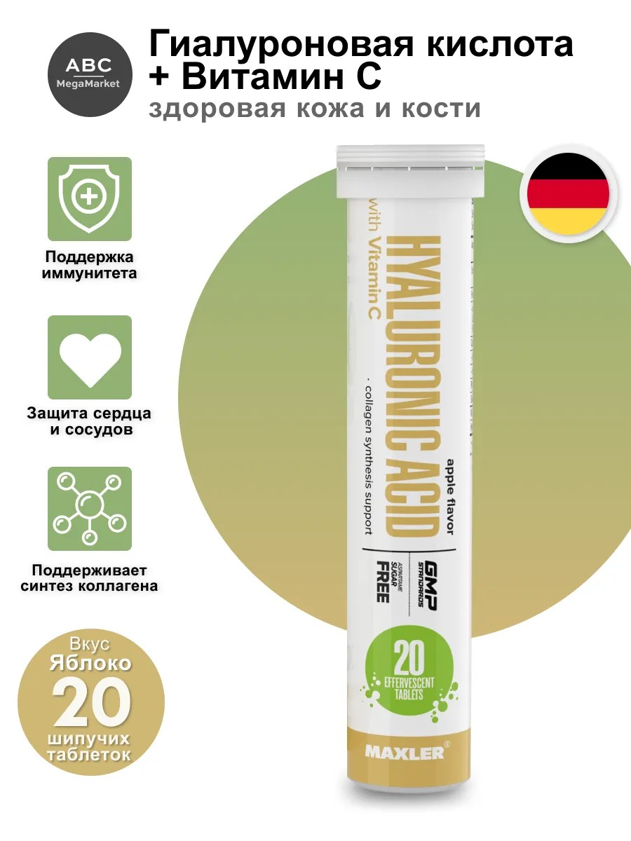 | Trade name | Biologically active food supplement MAXLER "Hyaluronic Acid with Vitamin C" apple flavor / MAXLER "Hyaluronic Acid with Vitamin C" Apple flavor, effervescent tablets of 4.0 g No. 20, 3 tubes No. 20 |
