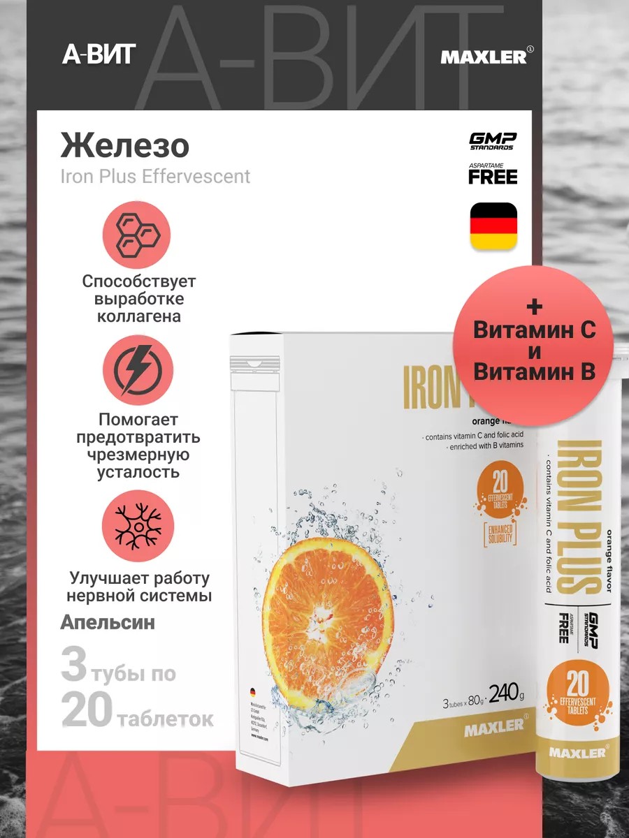 Maxler Iron Plus — это отличная формула, которая помогает организму вырабатывать эритроциты. Эти простые и удобные шипучие таблетки помогут вам удовлетворить ваши потребности в этих микроэлементах простым и вкусным способом.